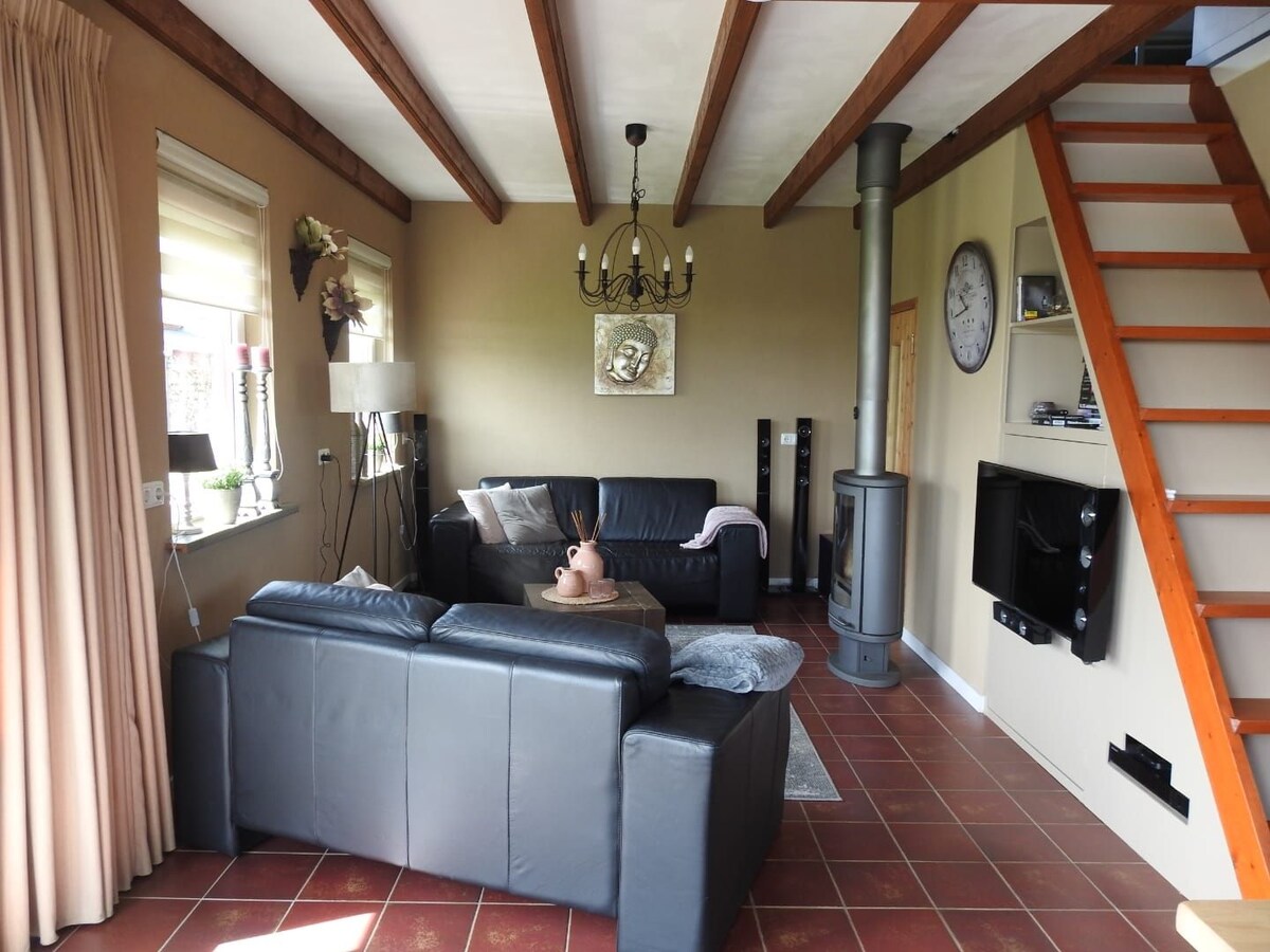 Détendez-vous et reposez-vous dans notre belle maison de vacances avec vue sur le Jan Durkspolder. Profitez de la nature et du silence ! Avec votre propre terrasse et une vue complètement dégagée, vous avez suffisamment d'intimité ! Le chalet est meublé de façon moderne et est équipé de lits à ressorts de luxe, d'une douche à effet pluie et d'une excellente connexion Wi-Fi. La région est idéale pour faire du vélo, de la randonnée ou de la voile. Nous avons des canoës et des vélos à louer. Le chalet est situé sur un petit terrain de loisirs avec 5 chalets et de la place pour 10 camping-cars.
