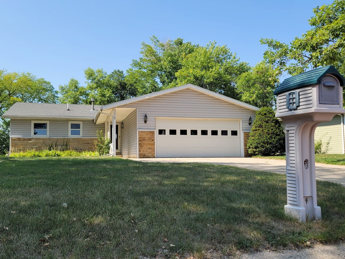 Idéalement situé au cœur d'Orange City, à quelques pâtés de maisons de la place, du terrain de golf de Landsmeer, des magasins et des cafés. À 1/2 mile du Northwestern College. 3 chambres récemment rénovées avec cour arrière clôturée, foyer et cuisine équipée avec appareils électroménagers en acier inoxydable NEUFS. Wi-Fi ultra-rapide. Vous avez accès à tout l'étage et à la terrasse arrière. ****L'hôte et son Border Collie Jax vivent au sous-sol avec une entrée séparée verrouillée de l'étage.****