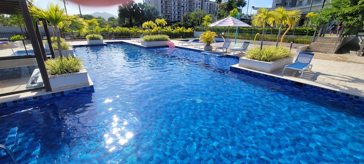 Bienvenido a tu escape verde en Tucán Country Club & Golf (Panamá Pacífico): Un condo completo, con acceso al golf, ideal para descansar, teletrabajar o desconectarte sin salir de la ciudad. Lo mejor del lugar: Vista al golf desde el balcón (hoyo #6 + reserva ecológica), piscinas, gimnasios (área social del edificio + Club House),A/C central, agua caliente,Wi-Fi rápido, 2 Restaurantes en sitio y facilidad para poder alquilar equipo completo y cancha de Golf profesional (tarifa no incluida).
