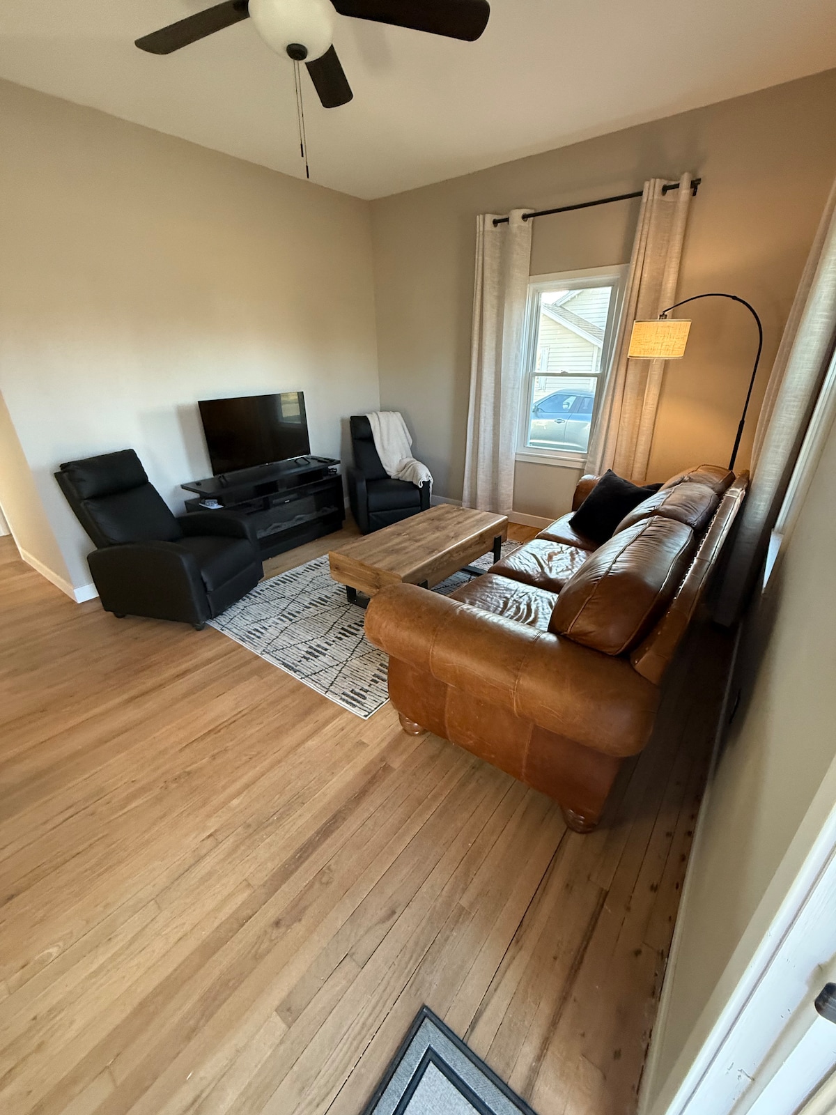 Ce logement paisible offre un séjour détente pour toute la famille. Situé à proximité du centre-ville, d'une épicerie et de restaurants. Quartier calme et paisible. SmartTv 55 pouces et Wi-Fi. Profitez du baby-foot dans l'arrière-salle ou de la terrasse arrière avec table de pique-nique et mobilier d'extérieur. Stationnement sécurisé en dehors de la rue.