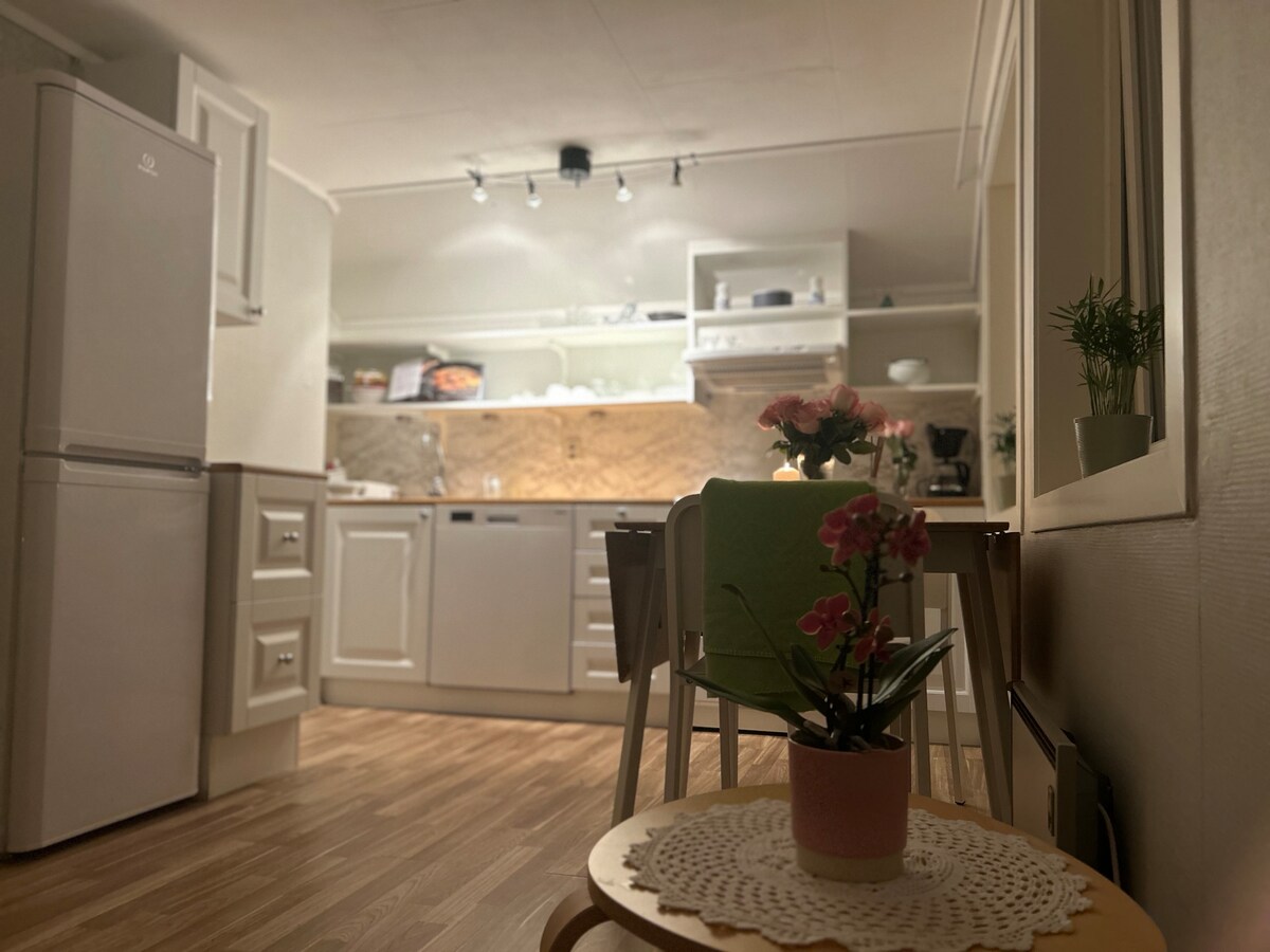 Appartement confortable et bien entretenu dans un logement simple, avec vue sur mer et patio privé. Bel emplacement au cœur d'un terrain de construction calme. Bien équipé avec TV, Wi-Fi, la plupart des équipements de cuisine et lave-linge. Nous sommes arrivés jusqu'à 17 h en raison de la situation professionnelle, mais vous pouvez demander si vous souhaitez une arrivée anticipée. 300 m du magasin et des bus. Le bus circule environ chaque 30 minutes jusqu'à Arendal/Grimstad/Kristiansand À 2 km de la belle Buøya avec plusieurs grandes plages. Entrée et couloir partagés, propre porte verrouillable.
