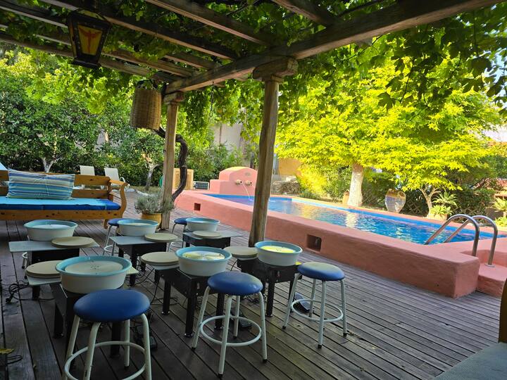 Pottery lessons in garden with pool, lunch & relax