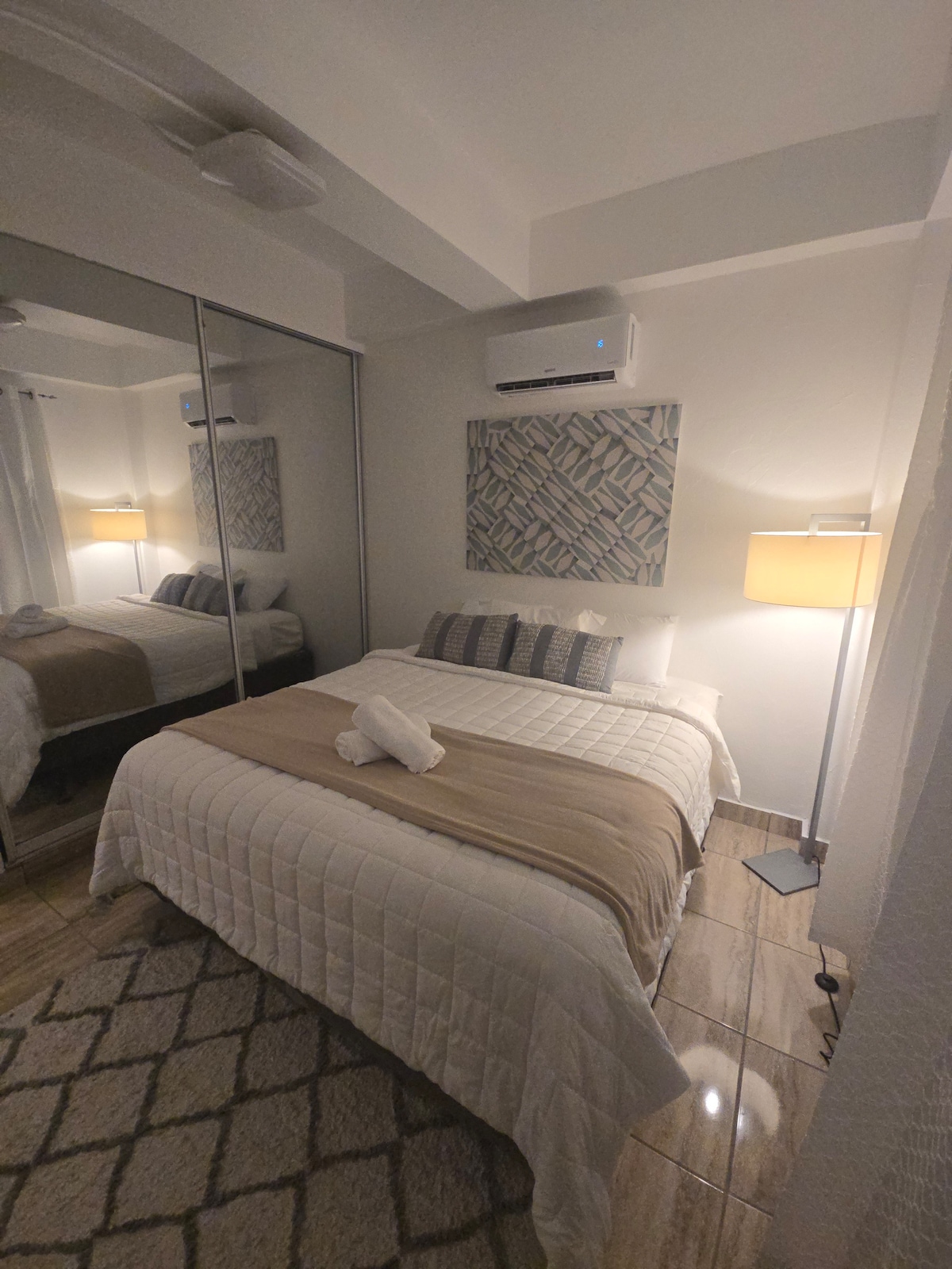 bel appartement à seulement 12 minutes de l'aéroport, dispose d'une chambre principale avec air et une autre chambre avec ventilateur de plafond super frais, parfait pour les couples et un autre client, a de l'eau chaude, cuisine équipée avec tout ce dont vous avez besoin, TV et un balcon pour fumer, à proximité des plages sur l'île verte, comté et à seulement 5 minutes de la Plaza Escorial où vous avez des restaurants, Walmart, des magasins et ainsi de suite, l'endroit idéal pour profiter des vacances.