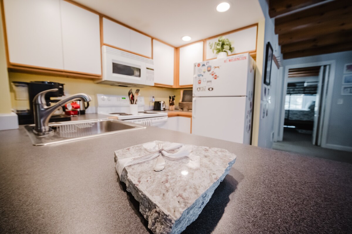 This two-floor ideally located condo is on the mountain between Barker and White Cap Lodges. You can ski in/out using Roadrunner trail, which is right across the parking lot. There is plenty of parking and the condo is located in Building 2, which is closest to the common lodge area with a fireplace and pool/hot tub/sauna access. While this is technically a 1 br, there is a wall between the queen room and the full/twin room for privacy, and a queen size murphy cabinet bed in the living room.