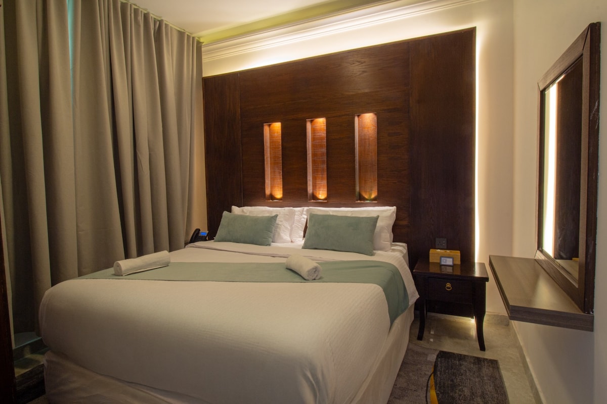 جناح بغرفة نوم وصالة ونوافذ واسعة