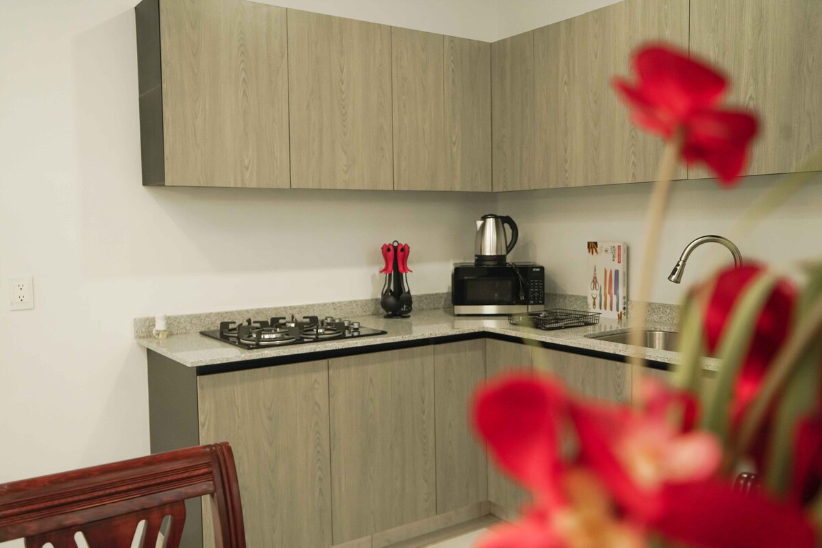 Appartement confortable au rez-de-chaussée tout équipé pour que vous profitiez au maximum de votre séjour. Avec un excellent emplacement, dans une colonie très calme et sûre, à 3 minutes du centre ville. Il dispose de tous les services, salon, salle à manger, cuisine avec ustensiles, vaisselle et appareils électroménagers, deux salles de bains complètes, deux chambres confortables avec de grands placards, wifi et parking à l'intérieur du bâtiment. Profitez des traditions, de l'hospitalité, de la bonne nourriture, et de l'artisanat de Sahuayo.