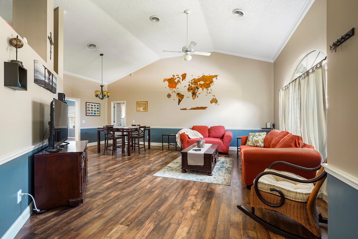 Détendez-vous dans ce logement unique et tranquille niché dans les arbres. Tous les nouveaux appareils électroménagers, meubles, appareils électroniques, draps et serviettes se trouvent dans cette maison entièrement rénovée. Aucune dépense n'a été épargnée pour rendre votre séjour aussi confortable que possible. C'est l'endroit idéal pour échapper à l'agitation de la vie. Profitez de votre première tasse de café sur l'un des 3 porches. Tree Tops est également proche des attractions populaires, situé à 6 miles de Vilano Beach et à 4 miles du quartier historique de St. Augustine.