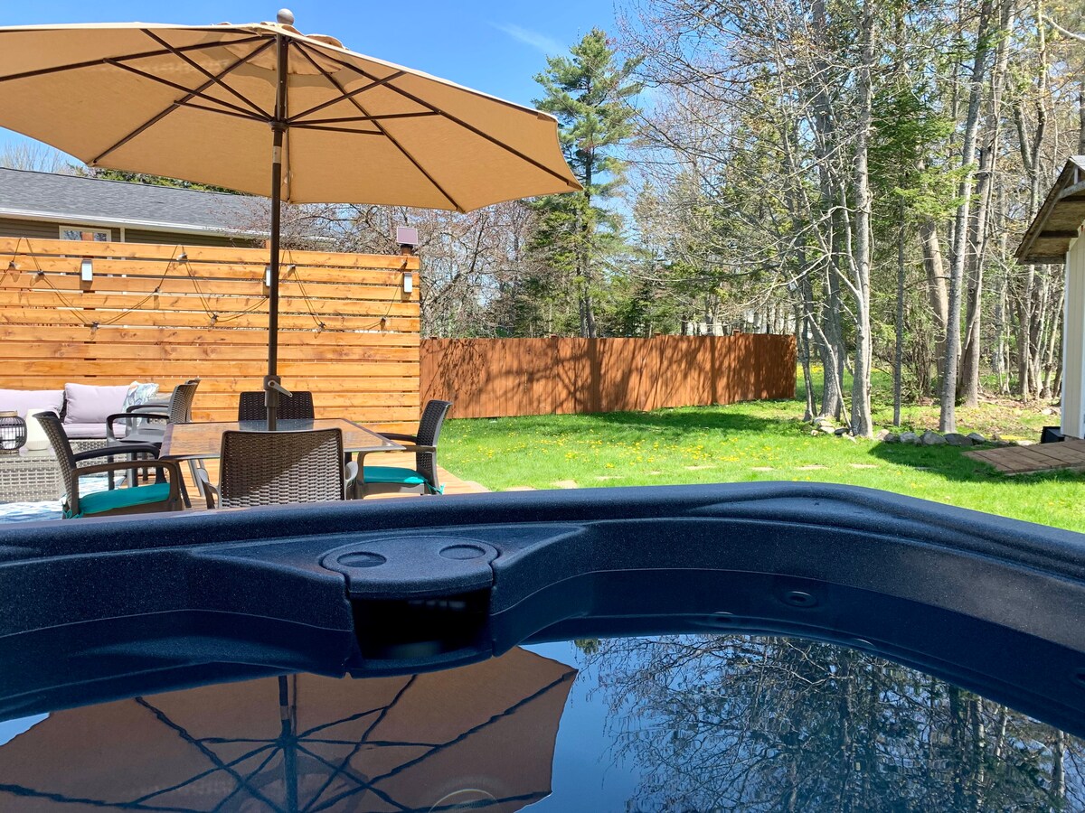 Bienvenue à la maison de plage ! Profitez d'une vie détendue et d'un design moderne dans notre maison d'hôtes de 3 chambres. Située à quelques pas de certaines de nos plages préférées du N.-B. Les repas en plein air et un patio protégé garantissent un plaisir sans insectes. Profitez du jacuzzi, réchauffez-vous avec le sauna ou le foyer et rafraîchissez-vous avec le plongeon à froid et la douche extérieure ! Un lit King Size dans chaque chambre attend votre arrivée pour vous détendre après une longue journée de voyage. Guettez par les fenêtres nos amis les renards et les hiboux !! Nous avons hâte de vous accueillir !