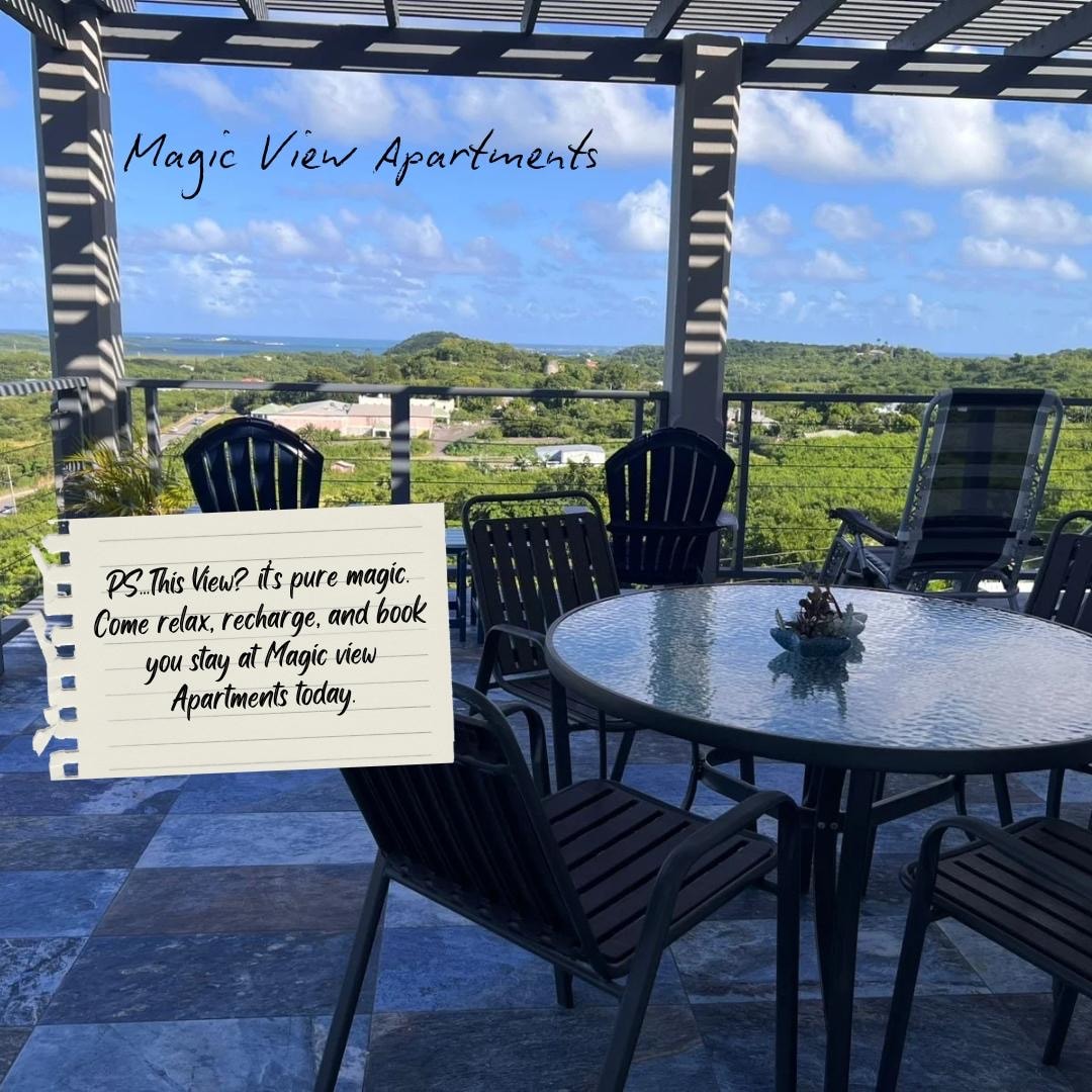 Magic View Apartments est situé sur la colline en pente du mont Joy, offrant une vue panoramique sur le stade de cricket Sir Vivian Richards et s'étendant sur le port historique de Parham et au-delà. Il est situé à 10 minutes de l'aéroport et à moins de 15 minutes en voiture de tous les principaux sites historiques d'Antigua et de belles plages. Détendez-vous dans cet espace calme et élégant et profitez de la beauté de la nature tout autour de vous.