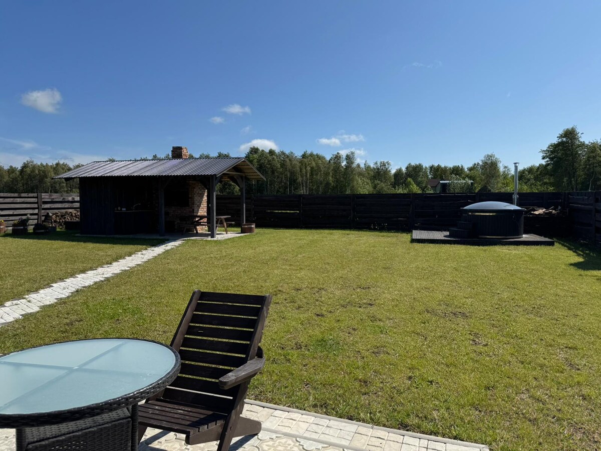 Maison exclusive à 150 m de la mer ☀️ avec toit vert et loft confortable à l'étage inspiré des maisons de hobbit. À seulement 6 km de Liepāja. L'établissement est en bordure de la mer Baltique. Profitez de vos vacances en bord de mer dans une plage de sable blanc propre. Sauna inclus. Baignoire extérieure pour un prix supplémentaire.