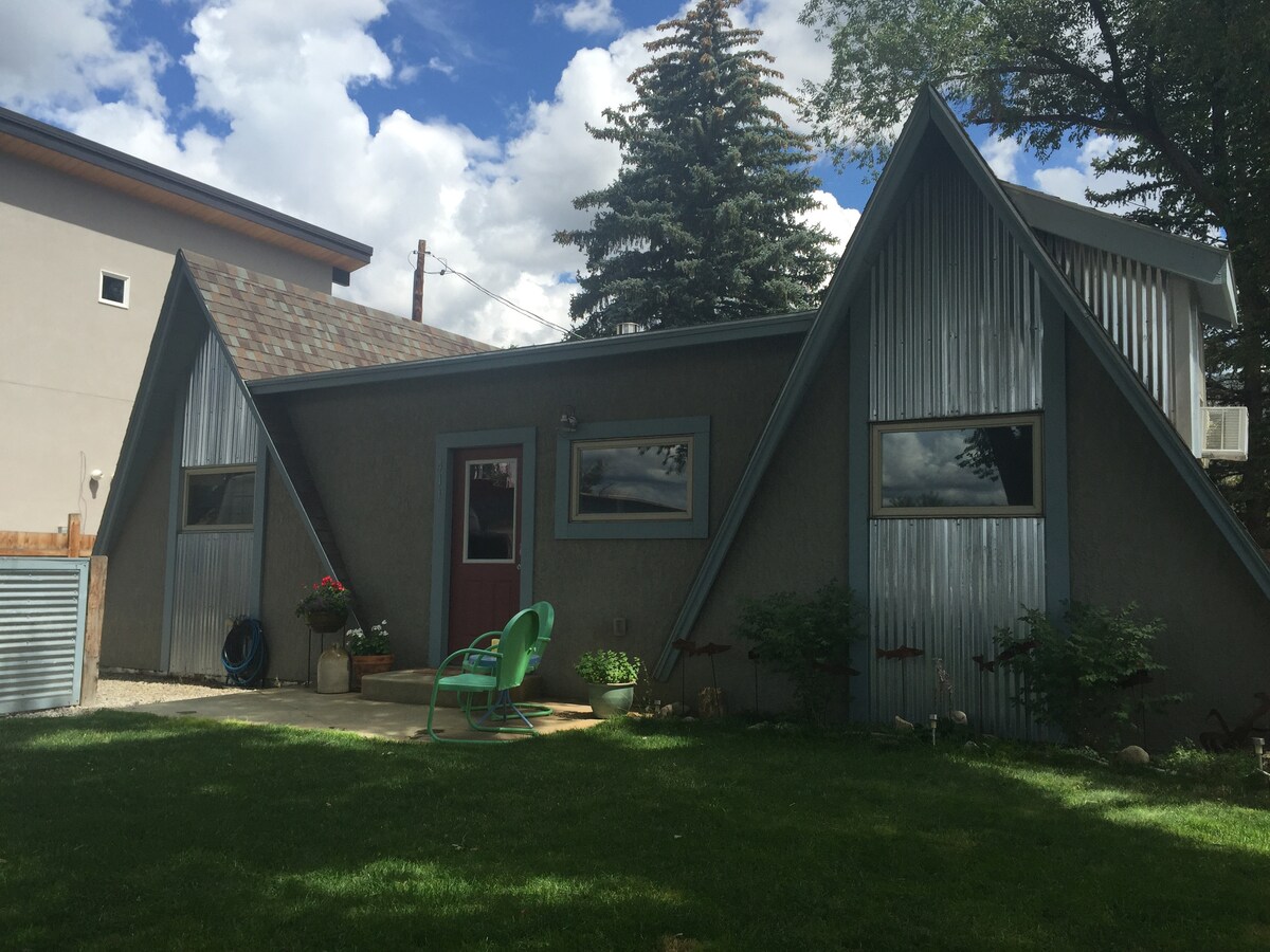 L'Adorable A est à Salida même avec un grand parking privé dans l'allée pour 2+ véhicules/remorques. Marchez jusqu'au centre-ville de Salida à 1/2 mile. Nos sentiers de randonnée/pistes cyclables locaux sont accessibles directement depuis la maison. Monarch à 25 minutes. Vue à 360° sur Sangre de Cristo et les sommets des collèges. La cour est ENTIÈREMENT CLÔTURÉE et les animaux de compagnie sont acceptés dans la maison. Lave-linge et sèche-linge dans la maison, cuisine approvisionnée, climatisation disponible, 2 grands patios avec sièges, propriété entièrement clôturée. Barbecue, salle à manger extérieure et foyer extérieur fournis. STRL#0243.