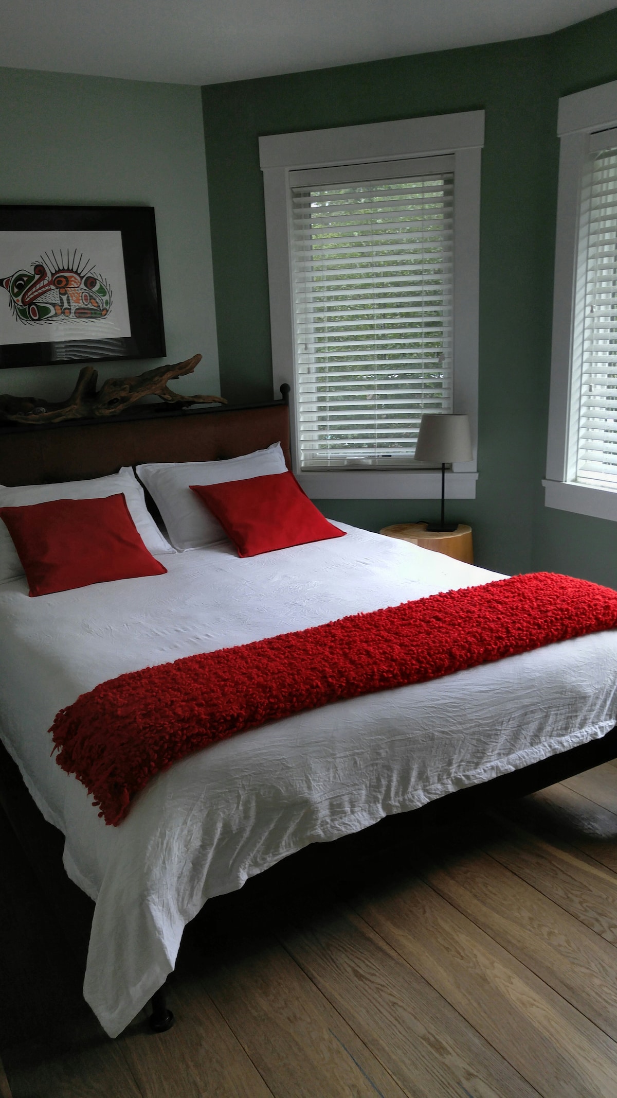 Tom's Retreat est un luxueux condo de style loft spacieux de deux chambres dans le magnifique bâtiment Whiskey Landing sur le port dans les territoires traditionnels du peuple Yuułuʔiłʔath. Un endroit tranquille pour une escapade relaxante avec des caractéristiques inspirées de la nature, il bénéficie de la conception unique de poteaux et de poutres en cèdre de la côte ouest. Situé dans une partie historique de la ville, le port est un port actif pour la pêche en charter, les visites écologiques, les aventures en kayak/SUP et la faune comme les aigles, les otaries, les loutres et d'autres espèces marines.