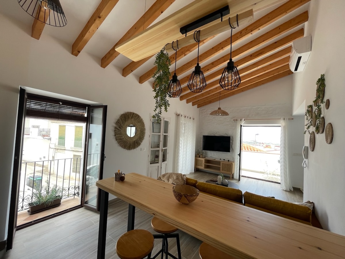 Duplex construit sur le rocher naturel de Salobrena, situé dans une impasse calme de la vieille ville. Accessible en voiture jusqu'à la porte. Entrée indépendante au niveau de la rue. Lumineux et paisible. Combine le confort moderne avec des meubles vintage et un caractère local. Cuisine équipée, CVC + wifi fibre optique + smartTV. À 10 minutes à pied de la plage. La base idéale pour explorer la région, se détendre ou travailler chez soi. Registre du tourisme andalou : VUT/GR/00159
