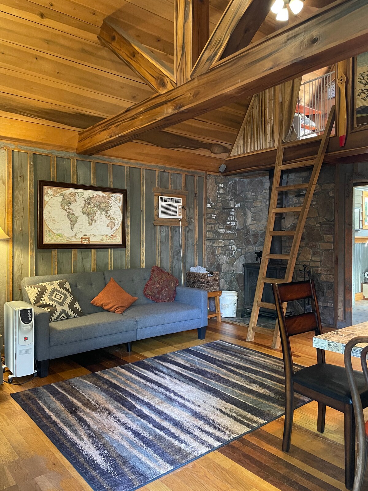 Visitez un chalet confortable au bord du lac au Seneca Treehouse Project. Il s'agit d'un appartement studio artisanal de 550 pieds carrés avec un lit king size, un futon et un jumeau gonflable. Découvrez notre jardin et notre forêt gastronomique en face de la cabine. Faites un pique-nique et profitez du lac. Notre but est d'offrir une expérience relaxante, inspirante et éducative. Nous encourageons les questions, il y a des caractéristiques uniques dans ce logement.