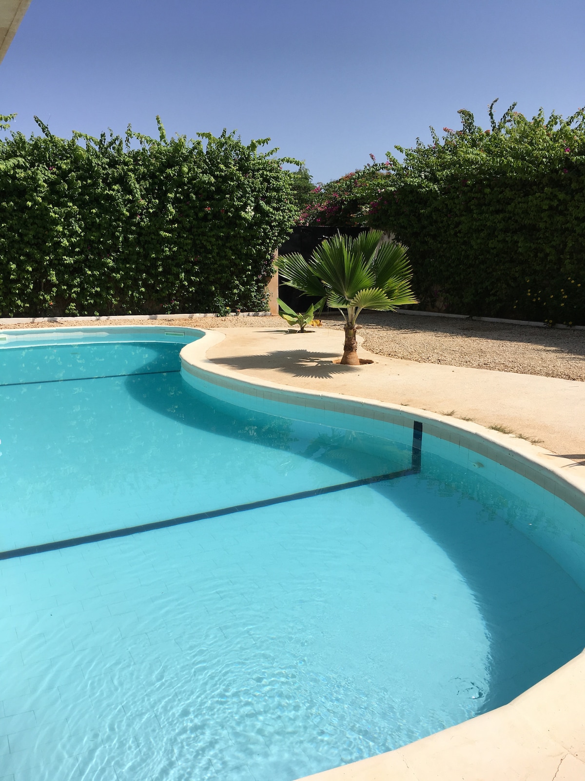 Entièrement climatisée, cette villa en plain-pied située dans un quartier résidentiel calme vous offre confort et tranquillité pour se reposer. Située à 5 minutes à pied du centre ville de Somone et 10 minutes de l'océan, vous pourrez profiter de tout à pied. Sa grande piscine privée et sa terrasse de 40 m2 vous offriront détente et fraîcheur. Un Lave-linge et de toilettes "invités" sont disponibles. WIFI inclus dans le prix et abonnement canal de base. Chaînes complémentaires en supplément.