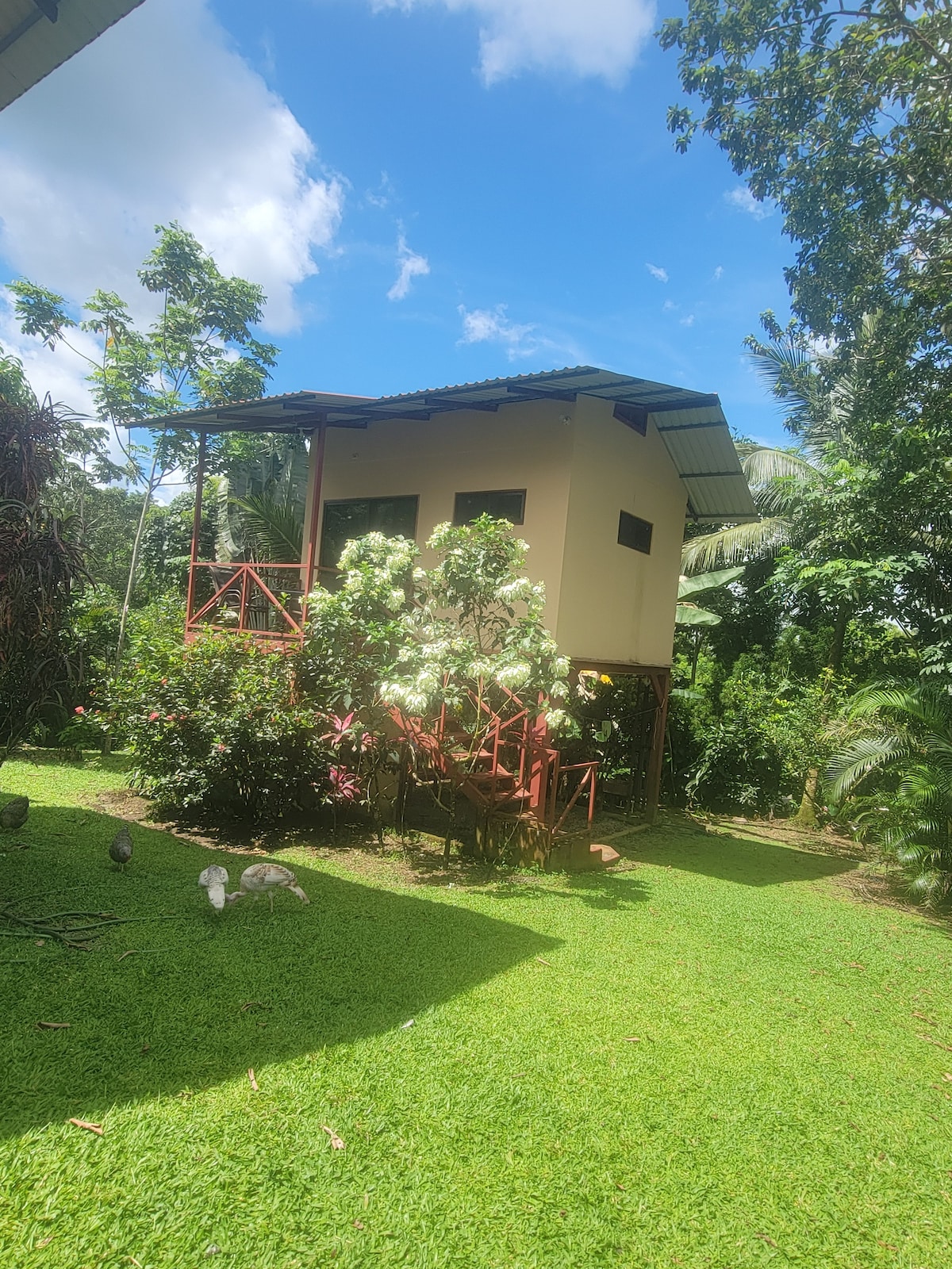 Notre belle cabane est située au-dessus d'une petite cascade💧, entourée d'arbres🌳 et de jardins verdoyants🌿 qui vous offrent une expérience unique et relaxante😌. Il dispose d'une chambre🛏️ avec salle de bain privée🚿, d'un balcon extérieur🌅, d'une baignoire🛁 et d'une cuisine🍳. Nous offrons le wifi📶, le stationnement🚗, l'accès à notre petite salle de sport💪, un espace barbecue🔥 et notre propriété où, en marchant le long de nos sentiers🚶♂️, vous vous connecterez avec la nature🍃 et verrez une variété de plantes🌺 et de petits animaux indigènes🐦🦎 de la région.