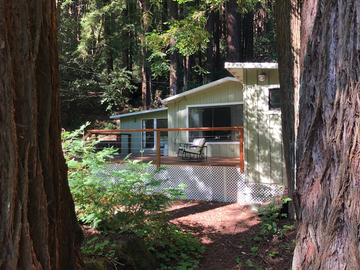 Notre maison d'hôtes est située à proximité de La Honda et Woodside dans les montagnes du nord de Santa Cruz. Situé dans la forêt de séquoias et donne sur un beau ruisseau depuis une belle terrasse. Il y a beaucoup de sentiers de randonnée et de vélo en espace ouvert à quelques minutes en voiture, et la plage. À 5 miles du restaurant Alice's. San Francisco et Santa Cruz sont facilement accessibles. La maison dispose de plafonds voûtés et d'une cuisine entièrement équipée, ainsi que d'une buanderie.