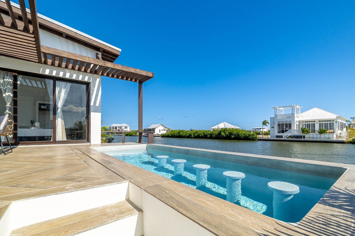 You’ll LOVE tiny house living in Paradise! 330 sq ft. of modern living with one-of-a-kind flare, charming details & amazing wading BEACH! Actual sandy BEACH- no seawall! Peaceful, safe area 4.5 miles south of San Pedro w/ a restaurant, bar & pool steps away. Dirt Road may be bumpy. Enjoy sunrise & sea breezes while relaxing in over-water hammocks. Genuine tiny house with all the amenities tucked tastefully in. A Romantic & Relaxing escape w/ adventure just waiting to be found.