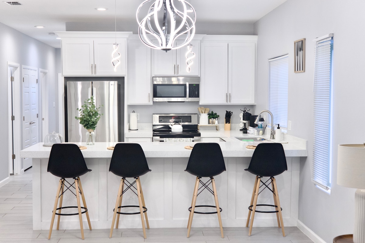 La House Wren est entièrement équipée pour être votre maison loin de chez vous. Une maison en duplex magnifiquement moderne située au centre-ville, à proximité des principaux magasins, restaurants et à 30 minutes de SPI. Elle offre une ambiance apaisante avec une maison spacieuse de 3 chambres et 2 salles de bain et un sentier à côté. La cuisine est équipée d'appareils en acier inoxydable, de comptoirs en quartz et, bien sûr, de tout ce dont vous avez besoin pour le café chaque matin ! Des équipements sont proposés et comprennent une buanderie privée pour votre usage personnel.