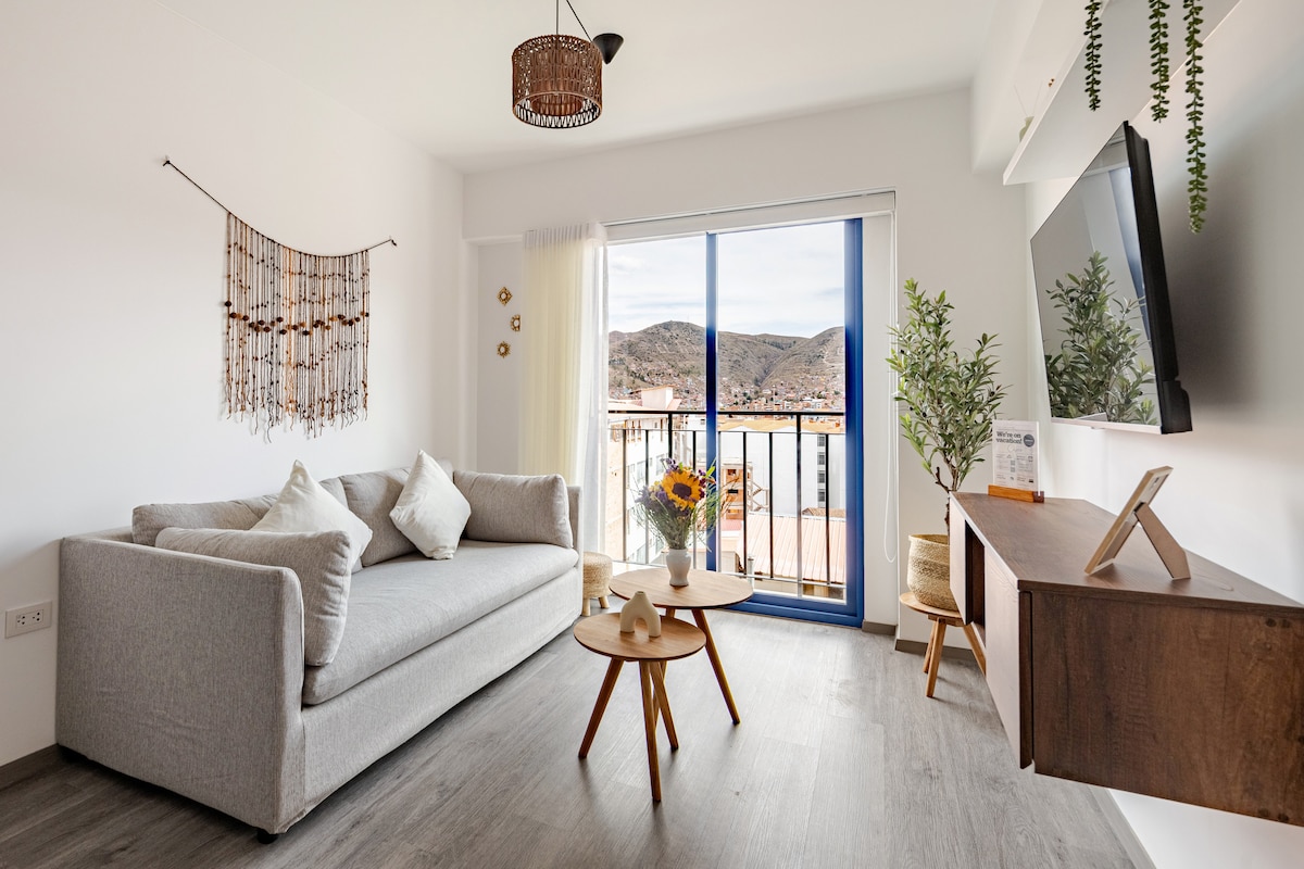 Un studio moderne entièrement meublé avec tout le confort et l'intimité d'un chez-soi, tout en offrant une vue panoramique sur la belle Cusco. Le logement est entièrement équipé avec des portes et des fenêtres insonorisées, des murs fortement isolés pour plus de chaleur, des rideaux occultants, de l'eau chaude à gaz constante, une connexion Wi-Fi puissante et une télévision intelligente (Netflix inclus) pour assurer une expérience de vie de qualité. Il ne faut que 10 à 15 minutes à pied pour rejoindre le centre historique. Le système de chauffage intérieur est également disponible moyennant des frais supplémentaires.