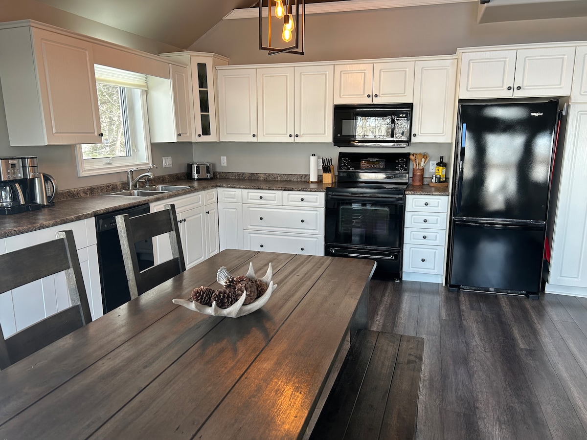 Chalet de luxe haut de gamme de 1250 pieds carrés qui dispose de 3 chambres, 2 salles de bain complètes, une grande cuisine ouverte/coin repas donnant sur le coin salon avec cheminée, avec une vue fantastique depuis les 3 grandes portes patio. Construite en 2020, cette maison dispose de tous les extras, y compris la climatisation, l'échange d'air, le chauffage au sol, des finitions haut de gamme et une terrasse en cèdre massif parfaite pour les divertissements. Situé à quelques pas du parc national du Mont-Riding, cet endroit est parfait pour une escapade d'un week-end. Numéro de licence de location courte durée : # LSR-06-2024