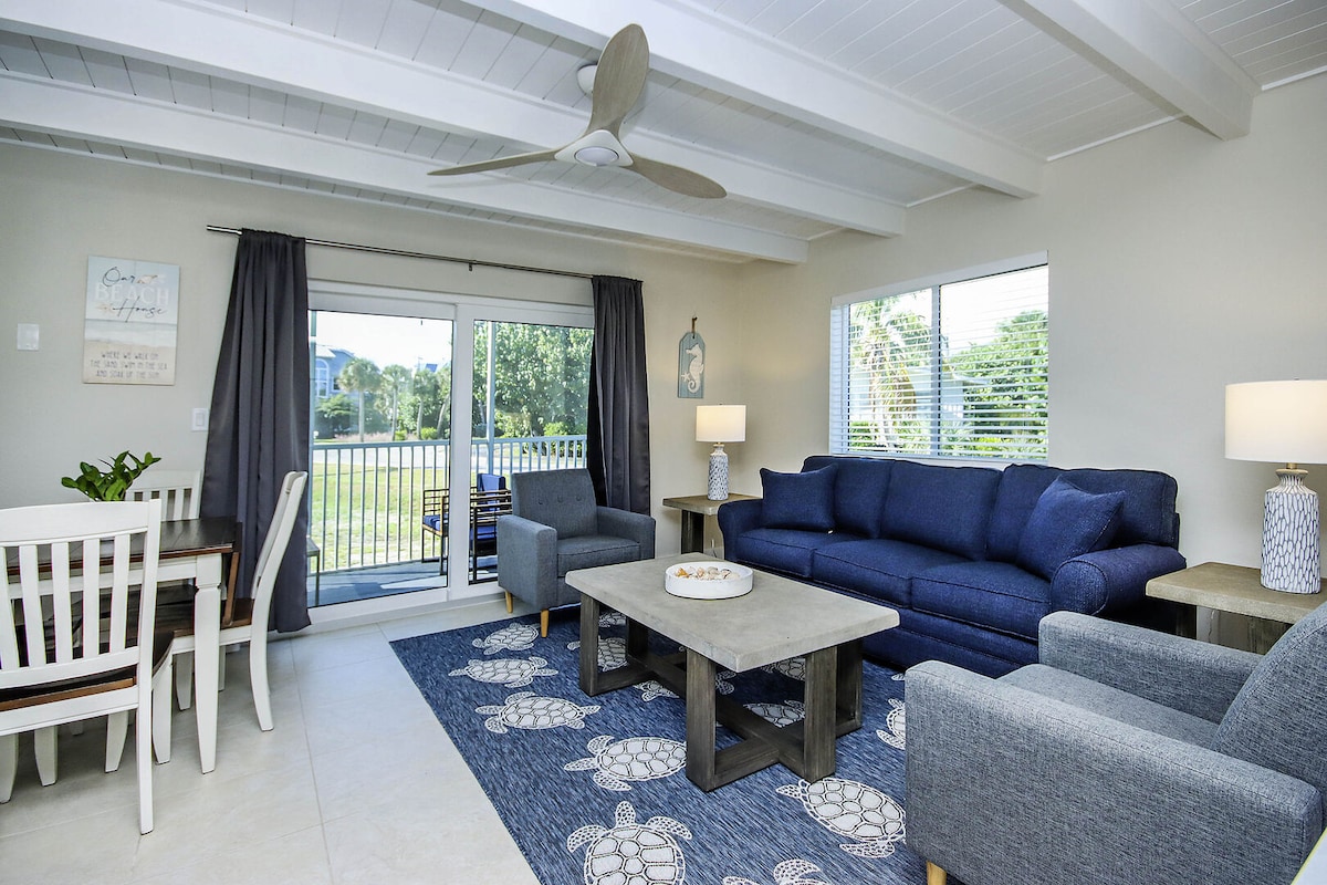 Bienvenue à The Turquoise Turtle Sanibel, l'un des appartements les plus élégants de Loggerhead Cay ! Notre lieu de vacances personnel ; cette propriété côtière familiale surplombe la piscine et se trouve à deux minutes à pied de la magnifique plage de sable blanc. Entièrement rénové en 2021 avec une nouvelle cuisine, des salles de bain, un revêtement de sol, des meubles et une belle décoration de plage sélectionnée. Prenez un verre et détendez-vous sur le patio, avec vue sur la plage et écoutez le son des vagues. À la Turquoise, vous ferez vraiment des souvenirs !