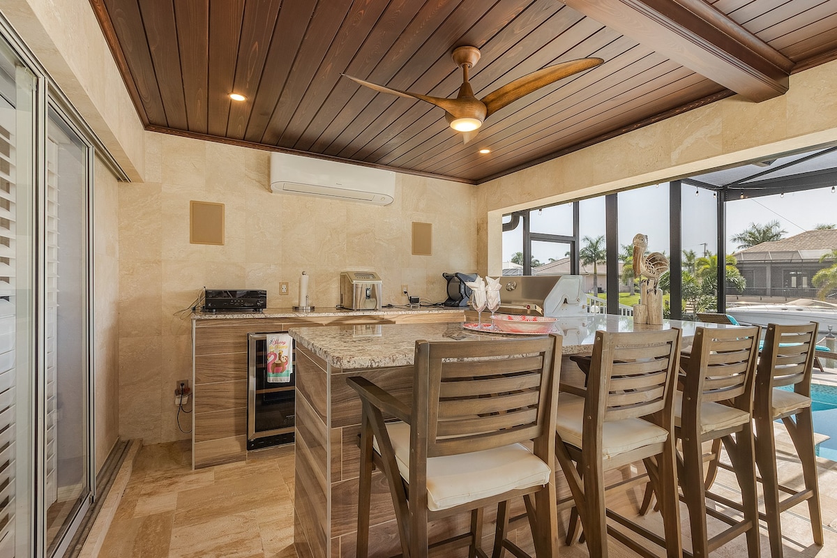 Unwind Cape Coral vous accueille dans le sud-ouest ensoleillé de la Floride, à proximité de magnifiques plages, de la pêche, de la chasse aux coquillages, de l'entraînement printanier des Minnesota Twins et bien plus encore. Venez profiter de cette nouvelle maison de construction avec piscine chauffée, kayaks, salle de jeux chauffée et refroidie (PlayStation 5), accès au golfe - canal d'eau salée, téléviseurs 4K OLED et bien d'autres équipements rafraîchissants. Vous adorerez cette maison propre et lumineuse avec une belle décoration. Située dans le quartier très recherché de Pelican, au sud-ouest de Cape Coral !