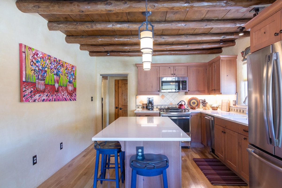 L'AirBnB le plus central de Santa Fe ! Vous pouvez aller partout à pied ! Une interprétation moderne du style traditionnel du Nouveau-Mexique au cœur du quartier historique du centre-ville. Nichée derrière le musée Georgia O'Keeffe, la Casita est un bâtiment de style territorial construit en 1850. Elle dispose de murs en adobe, de planchers en bois dur et en béton, de plâtre teinté personnalisé et de hauts plafonds avec poutres apparentes. Charme authentique de Santa Fe avec confort moderne et décor contemporain. Casita attenante pouvant accueillir 2 personnes également disponible sur AirBnB.
