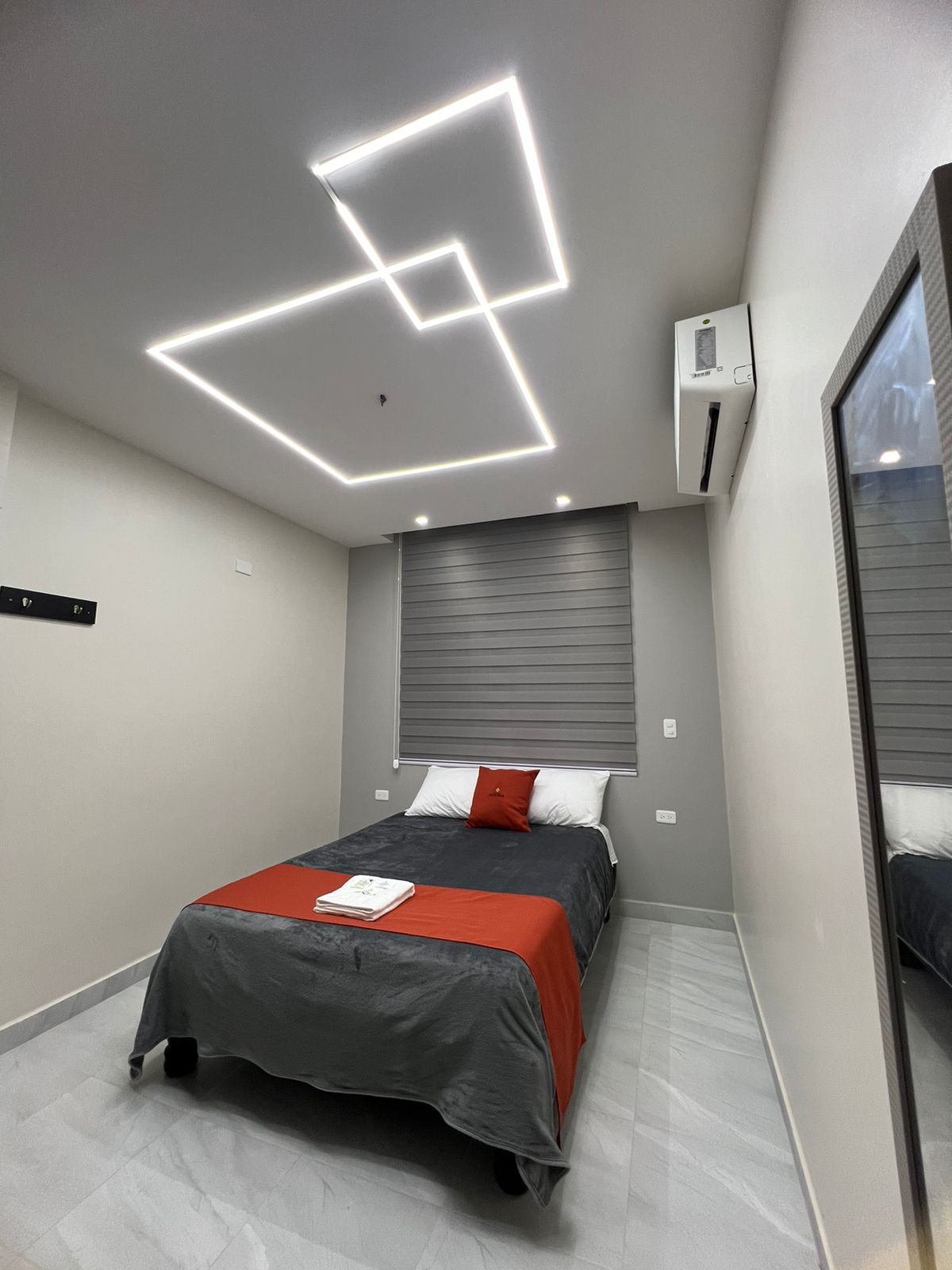 Profitez d'une expérience élégante dans ce logement central. plein de tranquillité, d'un jeu de chambre, avec beaucoup d'eau, de lumière et d'Internet, d'une télévision intelligente, d'un grand placard pour les vêtements, d'une salle de bain privée, d'un parking, d'un garage électrique, et avec des caméras de sécurité.