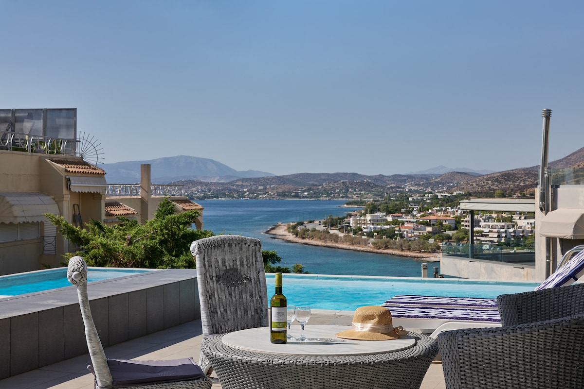 Notre appartement de vacances de 45 m2 récemment rénové est élégant, minimaliste mais confortable pour que vous vous sentiez comme chez vous. Un havre de blanc et de gris pâle, l'appartement est baigné de lumière naturelle toute la journée. Notre terrasse privée de 100 m2 vous offrira toute la sérénité et la tranquillité dont vous avez besoin pendant vos vacances en profitant de la vue imprenable sur la baie de Vouliagmeni. Proche des plages, école de ski, court de tennis, terrain de basket, hôtels, restaurants, forêt, parcs, à 30 min du centre d'Athènes, à 30 min de l'aéroport d'Athènes.