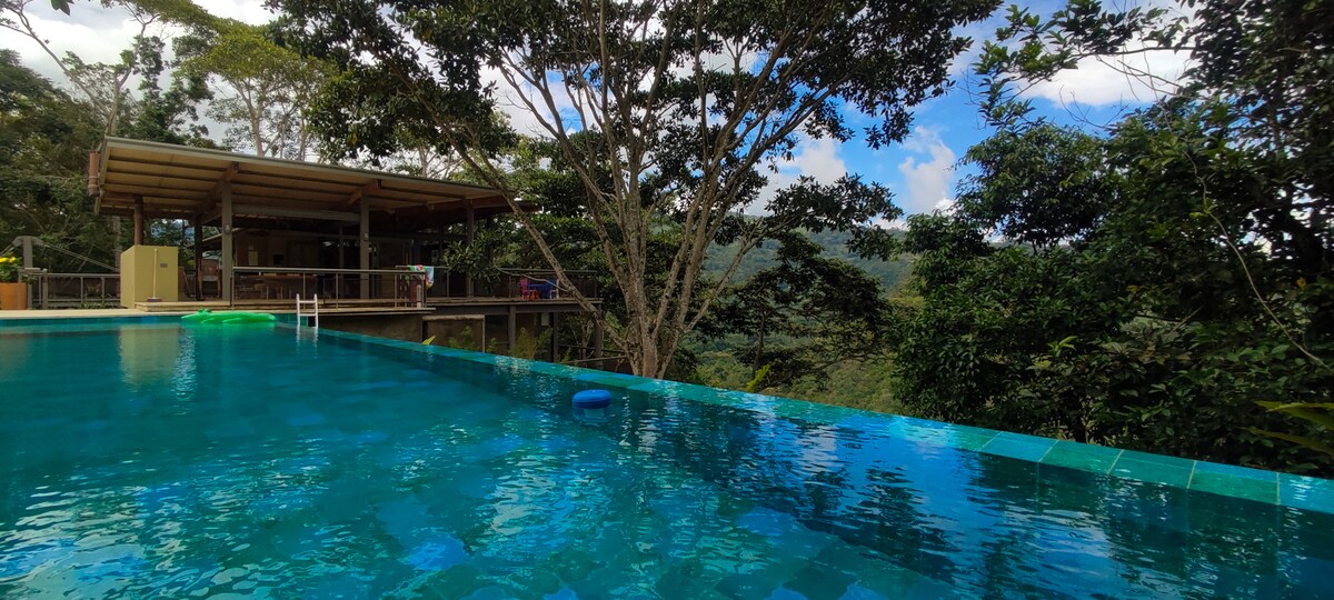A secluded rainforest villa within a private nature reserve, 2 hours from Bogotá. Swim in the infinity pool overlooking the forest canopy, hike pristine riverside trails, and wake up to birdsong and views over the newly restored coffee fields. Dedicated on-site staff and comfortable, thoughtfully designed interiors. Featured in the UN COP16 Biodiversity Summit presentation video.