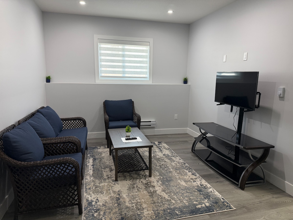 Bienvenue dans notre charmante suite au sous-sol, parfaite pour les voyageurs, les couples ou les professionnels. Profitez d'une entrée privée, d'une chambre confortable, d'une salle de bain complète, d'un salon meublé et d'une cuisine entièrement équipée pour votre commodité. La buanderie sur place avec lave-linge et sèche-linge ajoute une facilité supplémentaire. Situé à seulement 5 minutes de l'aéroport de la ville, cet espace offre confort, intimité et un accès facile aux attractions locales. Réservez votre séjour dès aujourd'hui pour une retraite paisible et pratique. Nous avons hâte de vous accueillir !