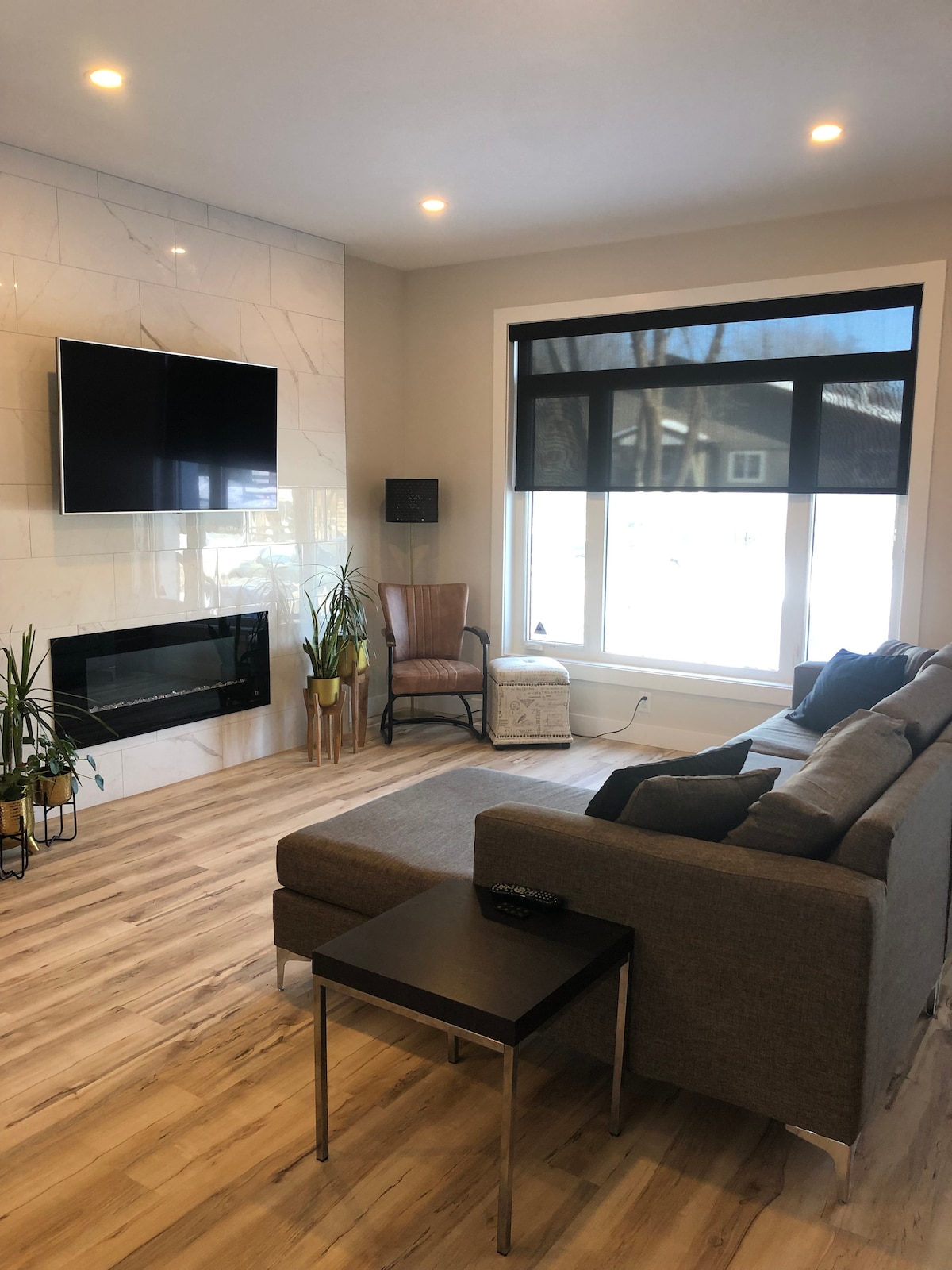 Suite toute neuve et entièrement meublée de 2 chambres avec cuisine. Entrée privée avec clé/serrure august, grand parking gratuit dans la rue. Cheminée, télévision connectée, connexion Wi-Fi gratuite, lave-linge/sèche-linge en suite, lave-vaisselle, linge de salle de bain et de chambre et literie inclus. À distance de marche d'un grand centre commercial, d'un centre de loisirs (piscine et bibliothèque), d'une rivière, de parcs et d'épiceries. Aéroport et centre-ville à 10 minutes. Propre, sans fumée, les enfants sont les bienvenus.