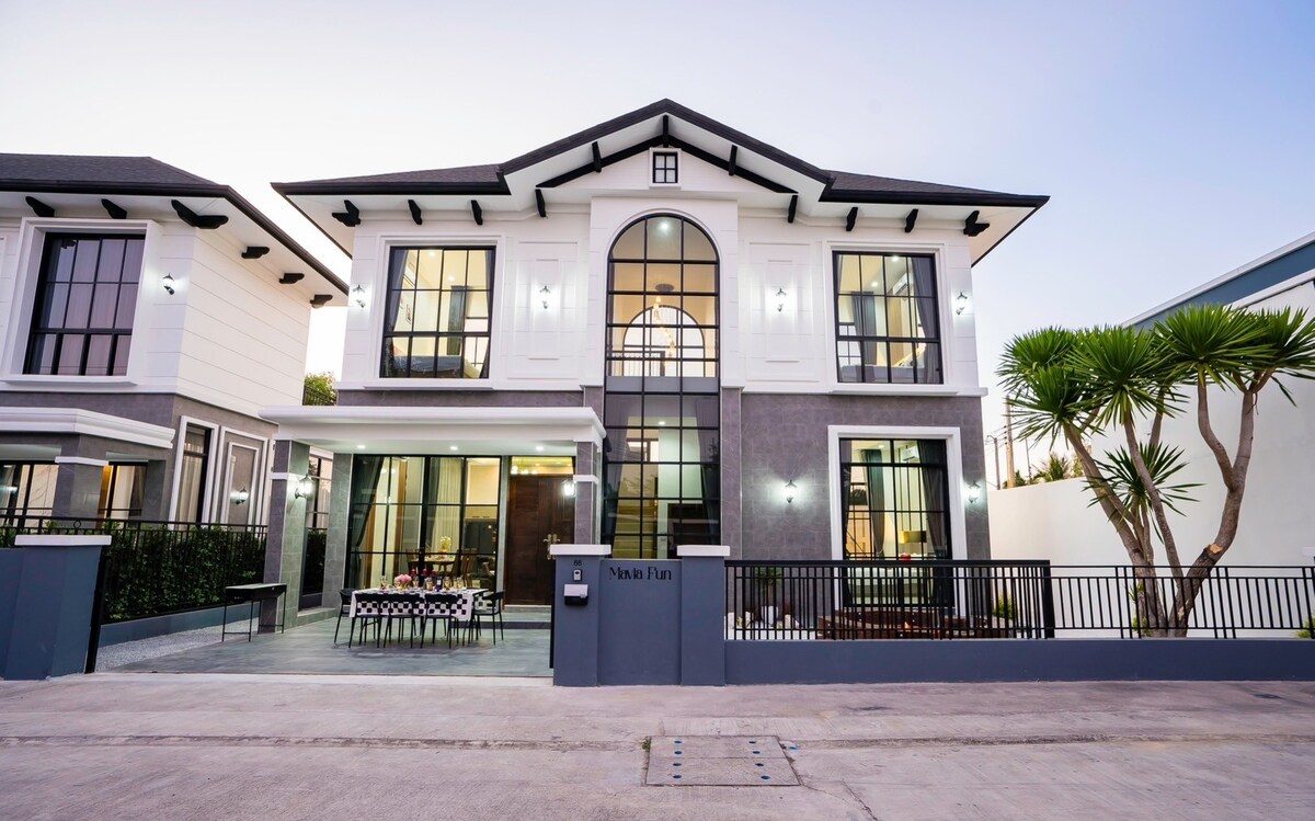 Si vous cherchez la maison pas très loin du célèbre café près de la plage et des lieux de voyage célèbres. - Plage deutu à 3,5 km - Sous le soleil 3,6 km - Club de plageave 3,9 km - Maison en verre Boho 3,9 km - Fréchets de mer à 5,8 km - Bar à 5,9 km - Legend siam 11 km -Columbia photo aquaverse 11 km - Ferme de moutons suisses de 12 km -Nongnuch garden 13 km - Pattaya d'aventure à Tarzan à 13 km Maison de 2 étages avec piscine 8,5×3,6 m 6 chambres 5 salles de bain Cuisine et salle à manger entièrement équipées 🎤🎱Salon, table de billard,wifi,karaoké