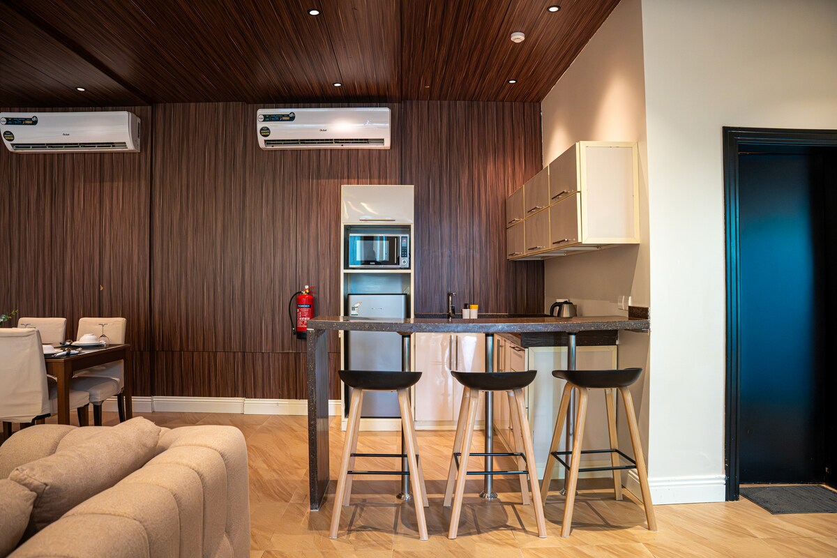L'ensemble du groupe sera disponible dans ce logement spacieux et unique. Le logement dispose de son emplacement à proximité à environ 9 minutes à pied de la mer et du jardin de la marina sportive. Proche de l'île de Nouris, du front de mer et des lieux de divertissement de sa ville industrielle Yanbu. Il dispose également d'une entrée privée et d'un patio . Accès intelligent à l'unité avec un code PIN ou une icône d'accès.