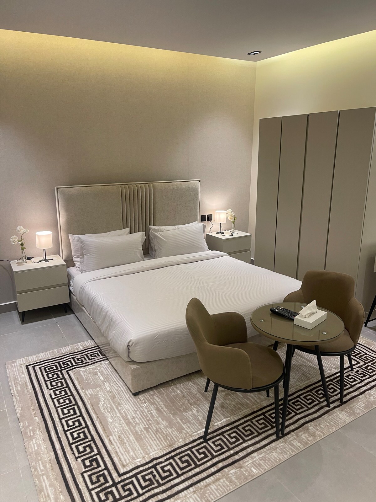 Appartement de luxe au nord de Riyad Conçu pour être différent et élégant avec un jardin extérieur, Il dispose d'une intimité totale et d'une entrée de soi. Un emplacement stratégique 📍 Situé à une distance : À 15 minutes en voiture de la saison de Riyad.🌟 À 10 minutes de Riyadh Park. 🛍️ 13 minutes du King Abdullah Financial Center. 🏙️ À 18 minutes de l'aéroport international King Khalid.🛫 Il se compose d'une chambre américaine, d'un salon, d'une cuisine et d'un jardin extérieur privé.
