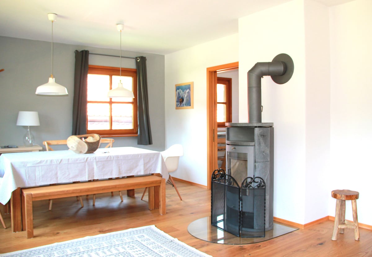 Nous avons une boîte à clés pour vous afin que vous puissiez vous enregistrer de manière autonome à tout moment. Il n'y a pas d'autres invités dans la maison. Nous habitons à proximité, donc il y a toujours quelqu'un pour vous si vous avez besoin d'aide. Ici, au milieu des Alpes et de la réserve naturelle Natura 2000, vous pourrez profiter du calme et de la détente avec une vue imprenable sur les montagnes et un lac idyllique. La légèreté et les impulsions inspirantes viennent d'elles-mêmes. Laissez-vous envoûter. (-: