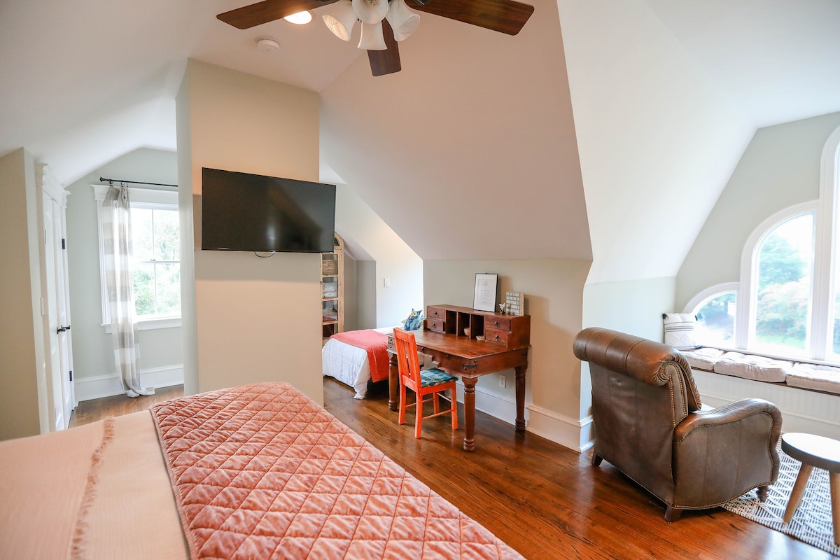 La suite « Sleepy Hollow » est une chambre privée spacieuse dans une maison éclectique, qui vous inspirera par son ambiance colorée et ses découvertes antiques. Reposez-vous paisiblement et réveillez-vous à la lumière naturelle avant d'explorer le quartier historique de Savannah et Forsyth Park, à seulement 3 miles, ou de vous rendre à Tybee Island pour une promenade sur la plage (20 min). Explorez notre propriété et profitez de la cabane dans les arbres et dites bonjour à Prince Mars (mini-cheval) dans sa grange sur place ! *détails ci-dessous*