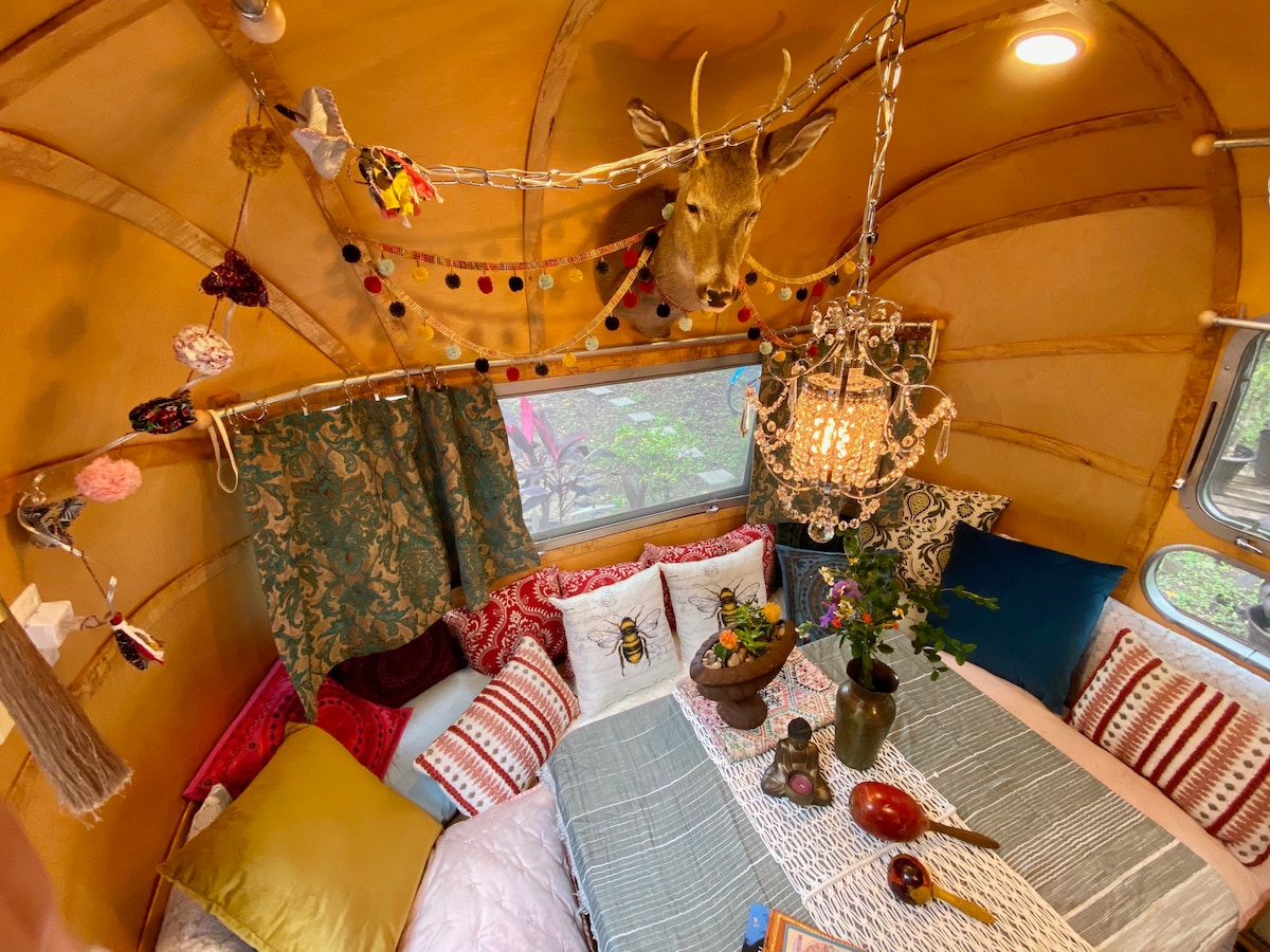 Boho Glamping paradis sur le marais à quelques minutes du quartier historique et du village de pêcheurs Thunderbolt dans une vieille laiterie. Des studios d'art, des chevaux, des jardins et 5 miles de sentiers pédestres vous attendent sous des chênes magiques et des décors cinématographiques. Plus de sanctuaire faunique que de quartier, avec toutes les commodités d'un appartement en résidence. Détendez-vous sur les hamacs et les balançoires, prenez un café le matin avec un corral rempli de chevaux, perdez-vous dans l'observation des oiseaux des marais, pratiquez le yoga, faites un feu et prenez une douche romantique en couple.