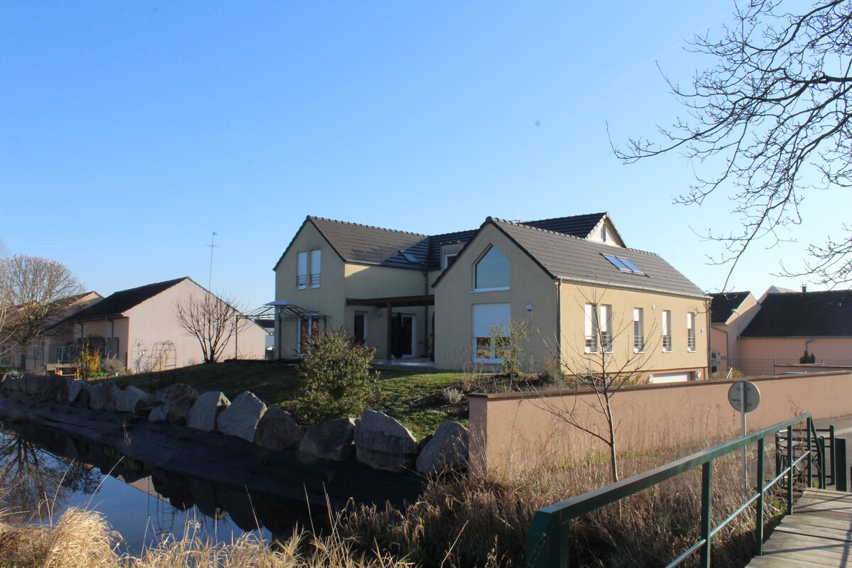 Logement entier de 80 m²,entièrement équipé,au coeur de l'Alsace, en bord de rivière, entre Strasbourg et Colmar (entre 30 et 40 mn de route),proche du Haut-Koenigsbourg et de la route des vins, à proximité des plus beaux marchés de Noël,à 20mn d'Europapark. Idéal pour visiter une région qui fait la part belle à la culture et à la nature. La frontière allemande est toute proche, ce qui permet de belles escapades en Forêt Noire, magnifique à Noël.