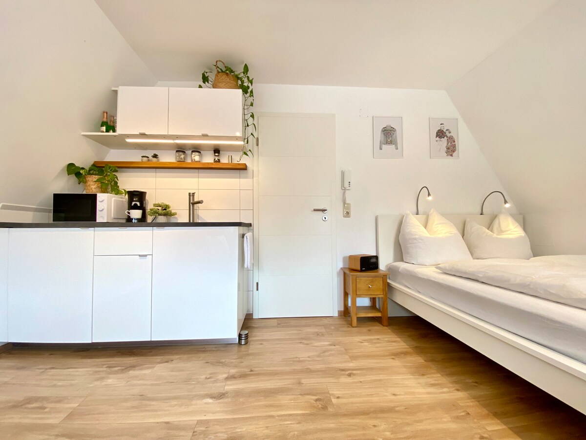 Notre appartement en duplex vous offre un décor confortable et moderne et vous invite à la détente. À l'étage, vous trouverez une grande chambre avec deux lits doubles. En outre, l'appartement offre une cuisine ouverte, une salle de bain et un salon confortable avec un canapé-lit. Un balcon ensoleillé orienté plein sud avec vue sur le monastère franciscain assure la détente. Devant la porte d'entrée, vous êtes directement dans la vieille ville de Füssen et juste sur la magnifique rive du Lech.