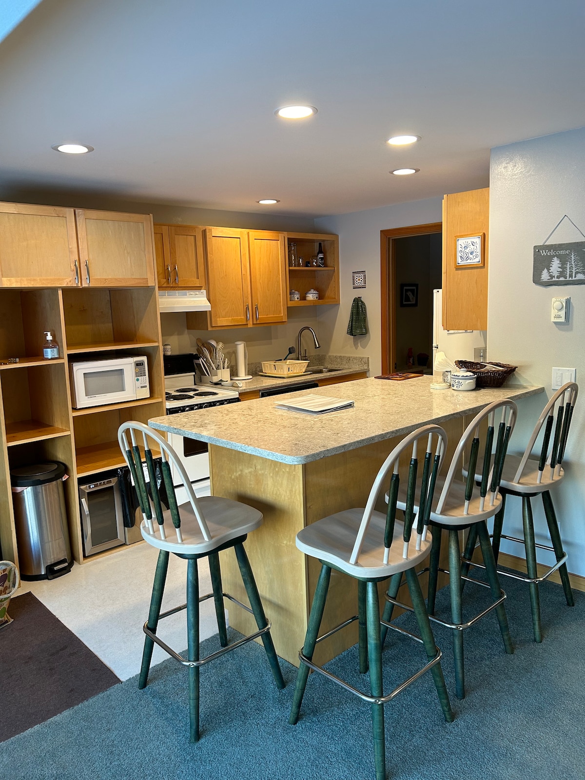 Profitez de l'hiver ou de l'été dans ce condo propre et spacieux de 3 niveaux situé sur une route privée à un mille au-dessus du village de Schweitzer. Le niveau principal dispose d'une cuisine mise à jour, entièrement équipée avec de nouveaux appareils qui fourniront tout ce dont vous avez besoin pour cuisiner un grand repas pour toute l'équipe. Il y a 3 chambres situées à l'étage avec 2 salles de bain complètes. Cet appartement peut accueillir confortablement 15 personnes. Détendez-vous sur la terrasse privée avec un fumeur de granulés de bois. *Les climatiseurs sont fournis pendant les mois d'été.