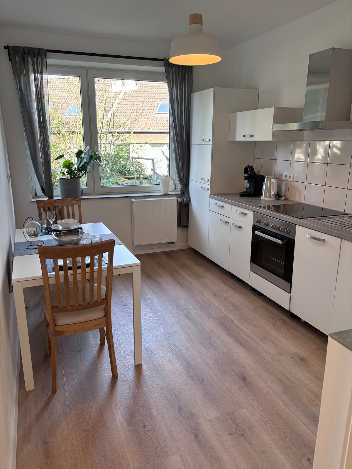 Le nouvel appartement (y compris séparée) est situé au cœur du plus beau quartier d'Essen : Werden. Ce qui t'attend : une grande cuisine élégante avec Table à manger et canapé confortable dans un jardin d'hiver ensoleillé (vue sur la verdure). Une chambre spacieuse avec un grand lit double et une armoire intégrée. Un couloir lumineux et une salle de bains élégante avec douche à effet pluie/siège. En plus : nouveau parquet/carrelage, wifi, draps, serviettes, machine à expresso et bien plus encore. À distance de marche des cafés, restaurants, lac Baldeneysee 2 min.