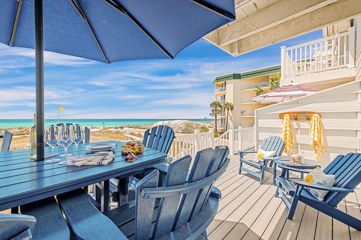Bienvenue dans notre petit coin de paradis à Seagrove ! Notre condo en bord de mer au 2e étage offre une vue imprenable sur l'océan, un accès privé à la plage, un parking gratuit, des chaises de plage, des jouets et un parasol et un intérieur entièrement rénové pour un séjour confortable et relaxant. Détendez-vous dans l'espace de vie ouvert, cuisinez dans la cuisine entièrement équipée et profitez du soleil sur votre balcon privé. Avec un accès direct à une plage privée, vous pourrez profiter de journées sans fin de sable, de mer et de soleil !