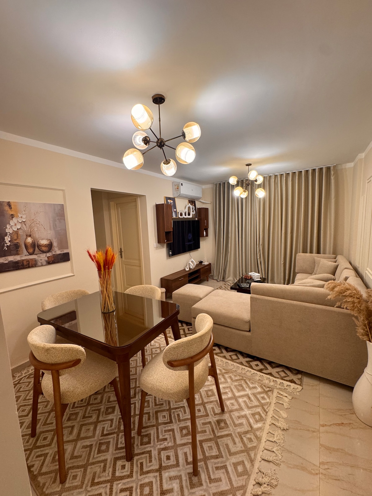 Relax with the whole family at this peaceful place to stay. B6 g 67 High furnitured apartment 2 bedrooms 2 toilets Well Servicesd area Completly air conditioned 2 smart tv WiFi Fully furnitured kitchen 🔥حصري وحدة فندقية مميزة ف قلب الخدمات B11 G113 ٢ نوم و ٢ حمام مكيفة بالكامل ٢ شاشة سمارت واى فاى مطبخ مجهز بالكامل قريبة من جميع الخدمات