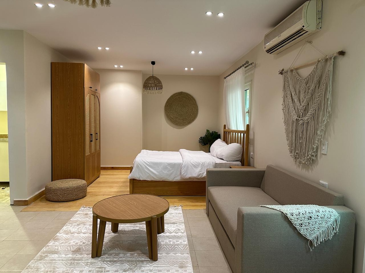 Ce logement unique dans le nord de Tessein, à 2 minutes de l'AUC, a un style unique. À l'intérieur d'un complexe privé, une chambre, salle de bain privée, 2 terrasses, un grand salon, cuisine, Wi-Fi, télévision intelligente, 2 climatiseurs, parking gratuit, accès à la piscine. À quelques minutes des grands centres commerciaux célèbres du nouveau Caire (métro, Carrefour,، Spinneys, marché Lulu, centre commercial Cairo Festival). Les visiteurs et les boissons alcoolisées ne sont pas autorisés.