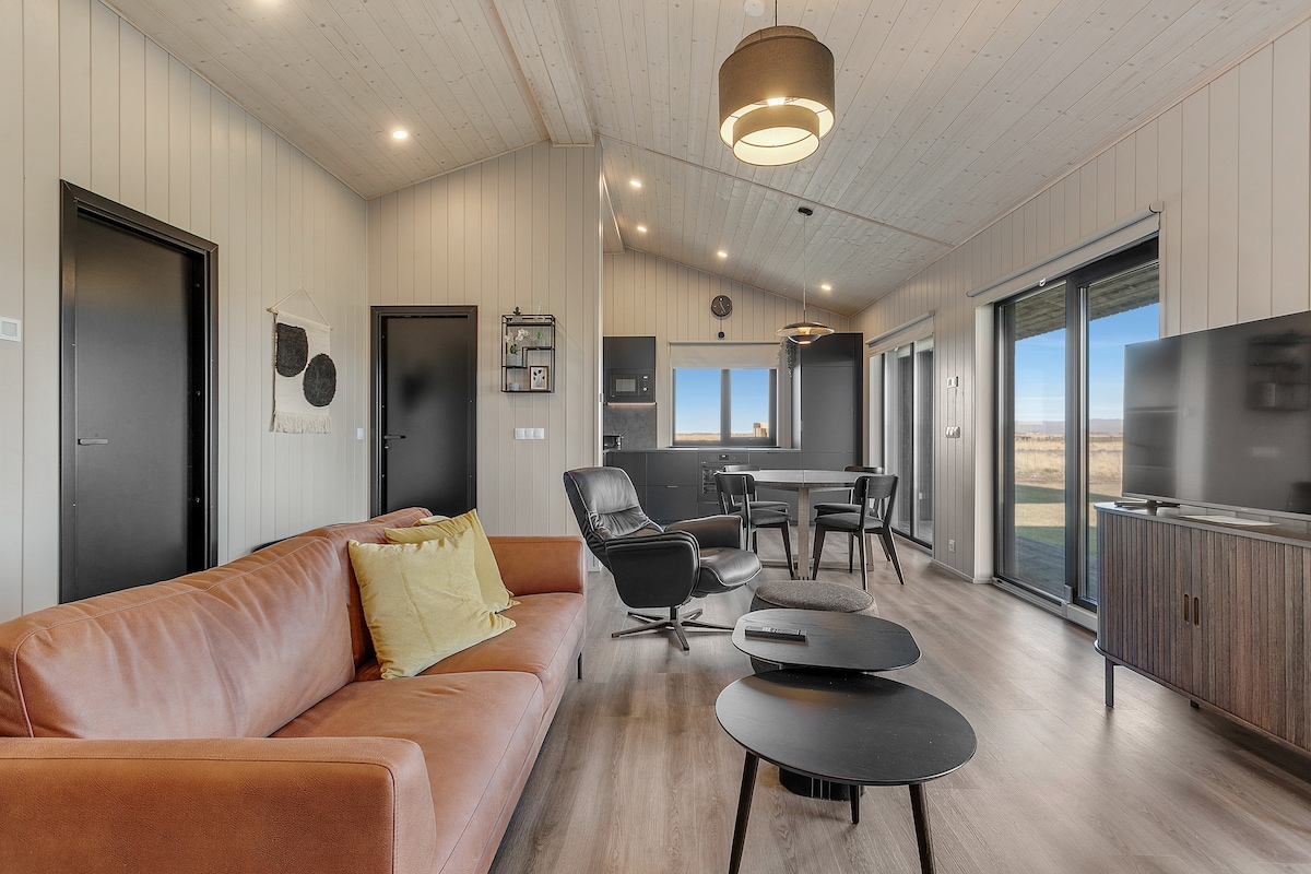Ce chalet est situé dans une ferme équestre familiale à proximité des villes de Hveragerdi et Selfoss et à 30 minutes de Reykjavik. Presque tout est fait à la main avec beaucoup d'amour du détail. Il dispose d'une cuisine entièrement équipée, d'une terrasse privée avec barbecue et d'un grand jacuzzi privé avec une vue imprenable. La maison (30 m2) est conçue pour 2 personnes ou une petite famille, mais il y a des possibilités de couchage pour jusqu'à 4 adultes. Nous proposons des excursions équestres privées. nos cottages : https://www.airbnb.com/users/93249897/listings