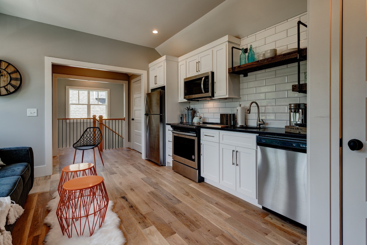 Situé dans le centre-ville historique de Senoia, cet appartement récemment construit se trouve à seulement 300 mètres de la rue principale de Senoia avec ses restaurants, ses boutiques et le célèbre décor « Alexandria » de The Walking Dead. Appartement luxueux au-dessus du garage avec une cuisine complète, une grande chambre avec un canapé-lit Queen Size, une chambre privée avec un placard et un lave-linge séchant empilés. Wi-Fi haut débit, télévision connectée, appareils électroménagers haut de gamme et commandes CVC indépendantes. Même les zombies ont besoin de leur confort.