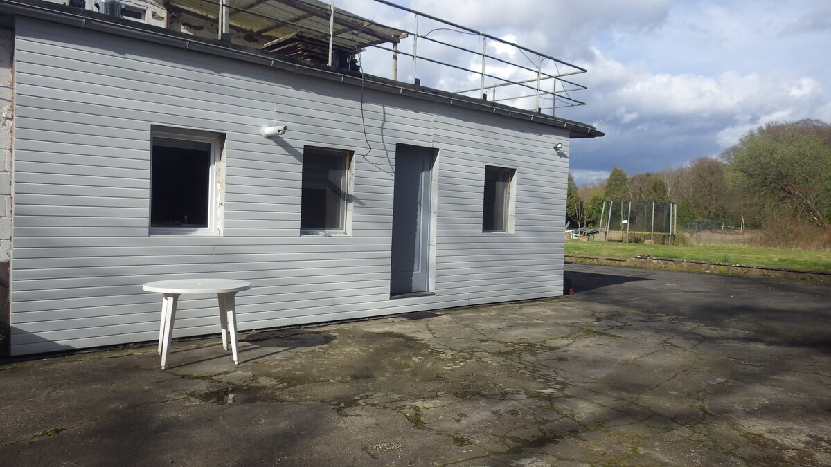 appartement de 82m2 dans Un cadre calme et reposant de campagne avec vue imprenable , à 10 minutes du centre de liege en voiture, 2 minutes de l autoroute Namur- liège et à 5 minutes de l aeroport de Bierset. Dans une propriété privée totalement cloturée. Chambre avec lit double et salon convertible 2 places. Salle de bain, grand salon , cuisine équipée et toilette indépendante , terrasse couverte et ext,jardin. place de parking gratuit