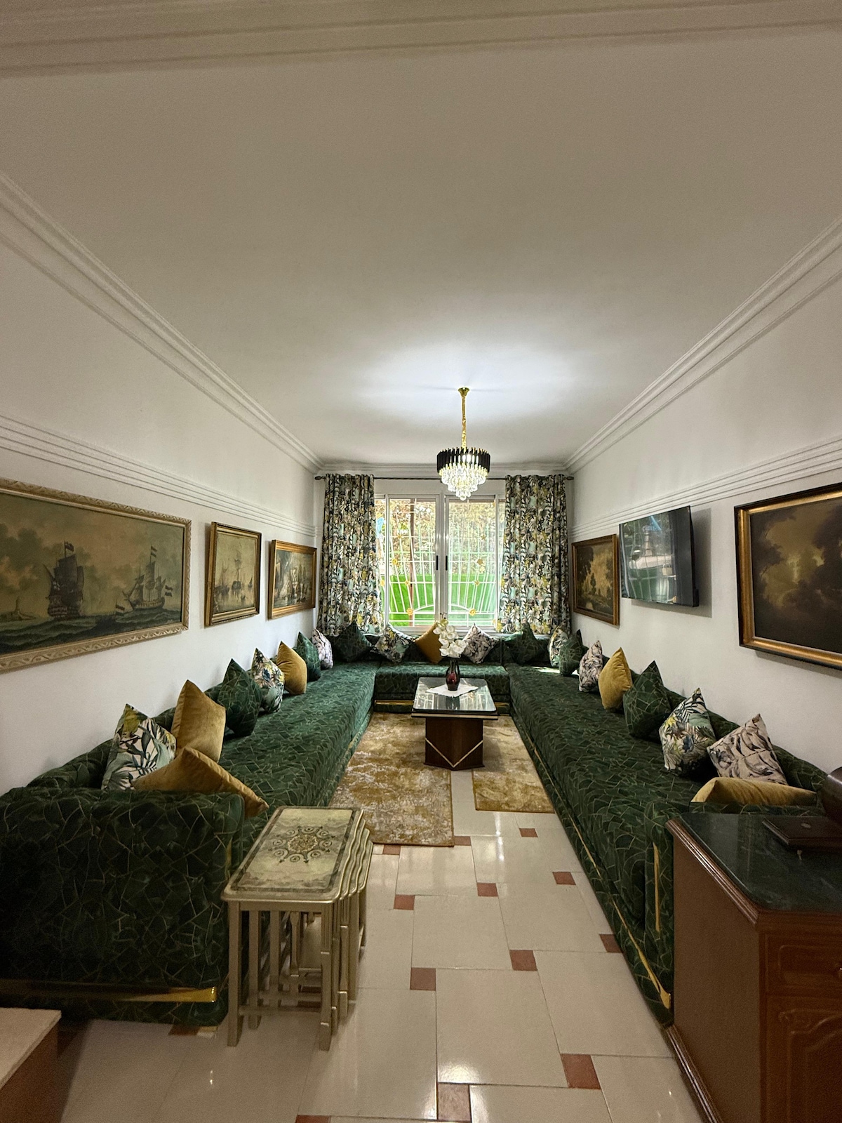 Découvrez une magnifique villa à la sortie d’Imouzzar, à 2 min du centre-ville, 35 min de Fès et 20min d’Ifrane. La villa, sur deux étages, offre deux salons (un avec cheminée), trois chambres, trois salles de bain, une cuisine équipée et un balcon. L’extérieur est composé de deux jardins : l’un avec piscine et salon extérieur, l’autre avec barbecue et une table à manger. Il y’a une Connexion Wi-Fi, TV smart 65 pouces, stationnement intérieur, caméras de surveillance et concierge à disposition.